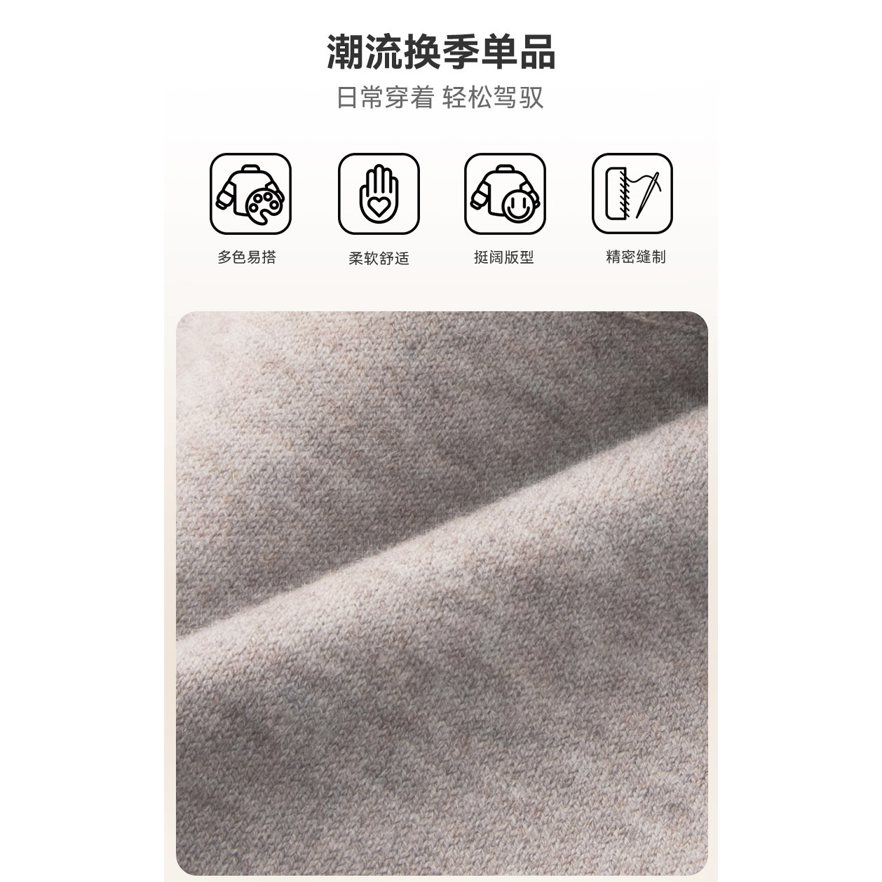 NEVERNEED亨利领套头毛衣男秋冬季美式慵懒风含绵羊毛针织衫外套