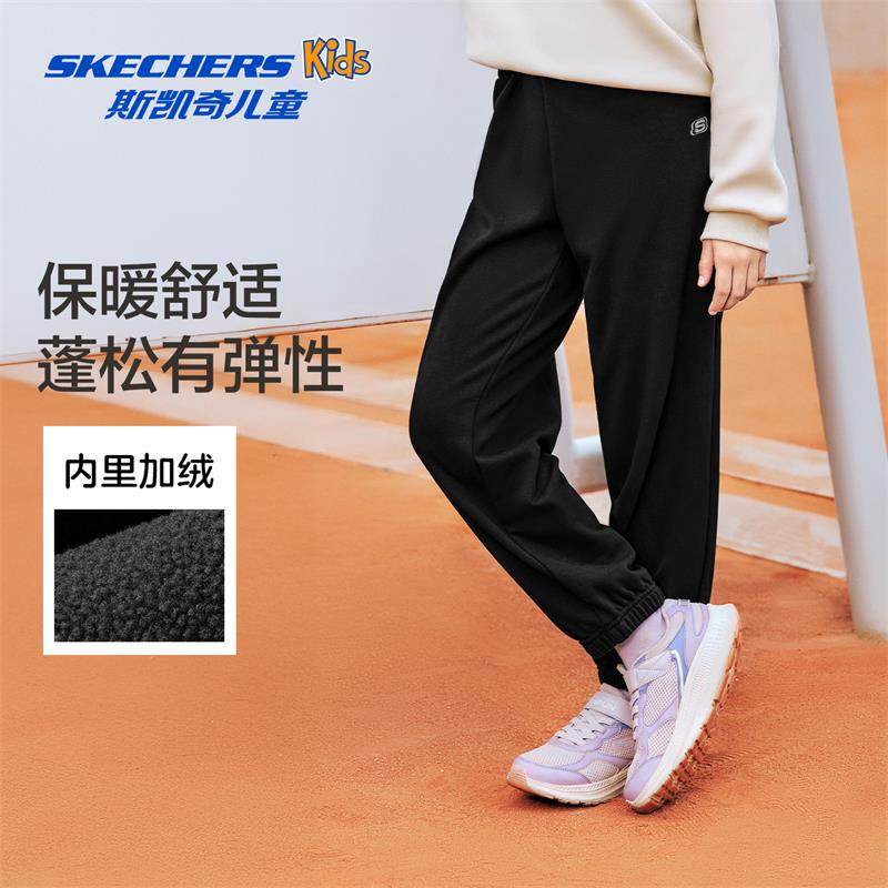 Skechers斯凯奇儿童休闲卫裤冬季童装保暖裤子男女童加绒运动裤