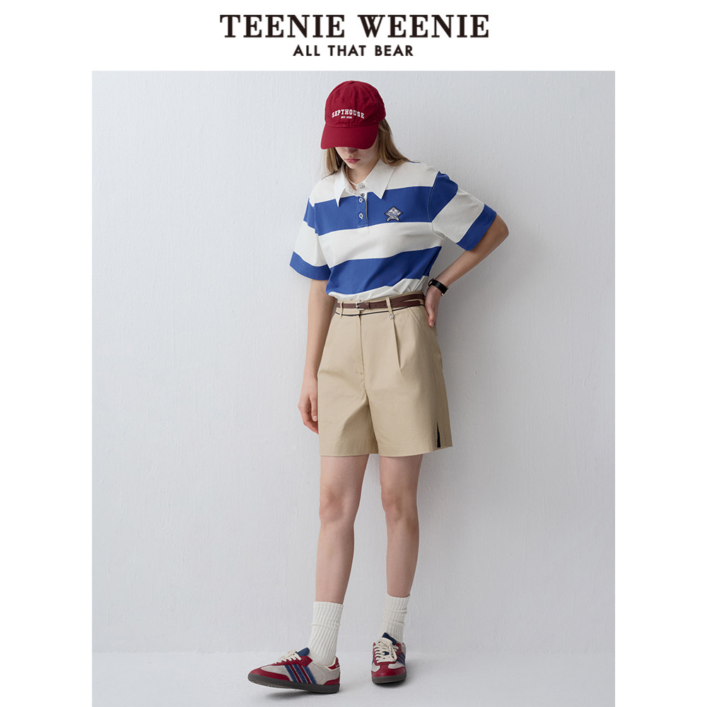 TeenieWeenie小熊奥莱夏季简约可拆卸腰带休闲高腰短裤子