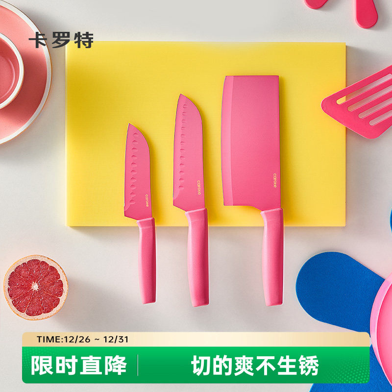 卡罗特菜刀厨房家用芭比粉水果刀切菜刀三德刀女士小菜刀刀具套装