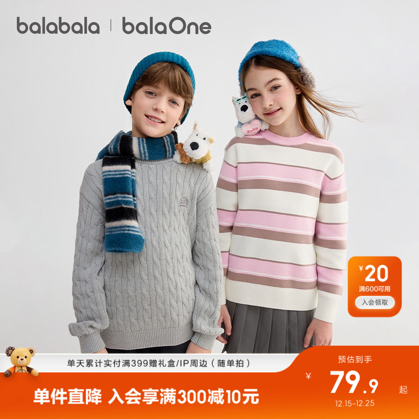 巴拉巴拉童装儿童毛衣男童女童2025新款冬装宝宝针织衫亲子装上衣