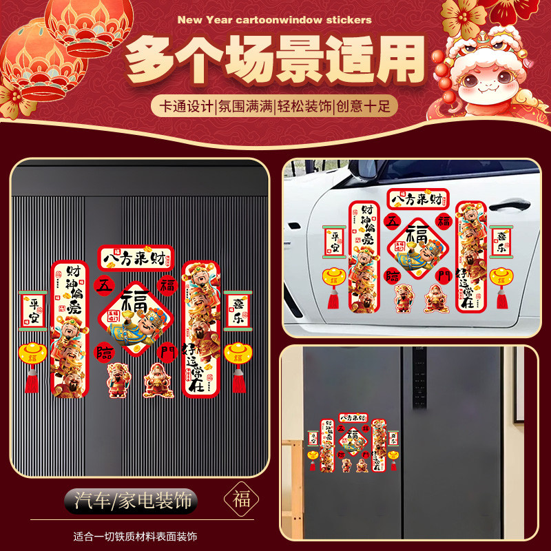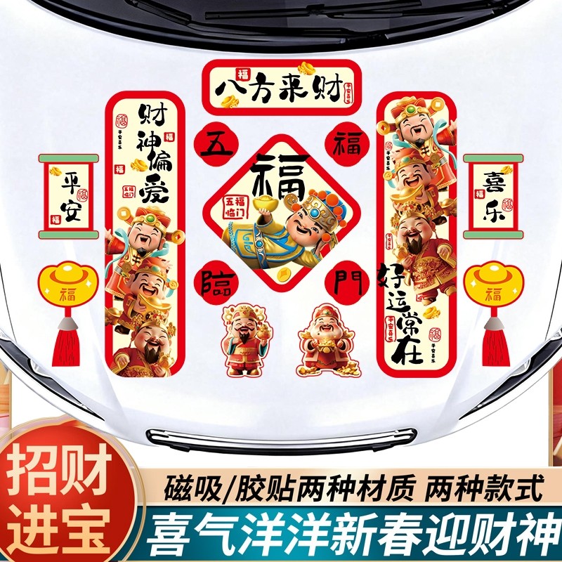 马年对联磁吸性车贴2026新年财神爷福字电动汽车贴春联车门窗贴纸