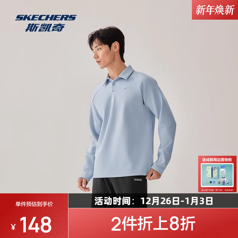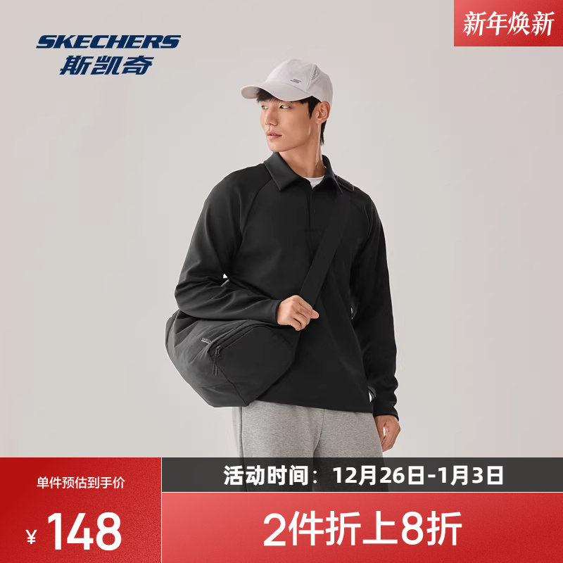 斯凯奇运动POLO衫2025冬季男士针织长袖衫吸湿速干透气舒适百搭