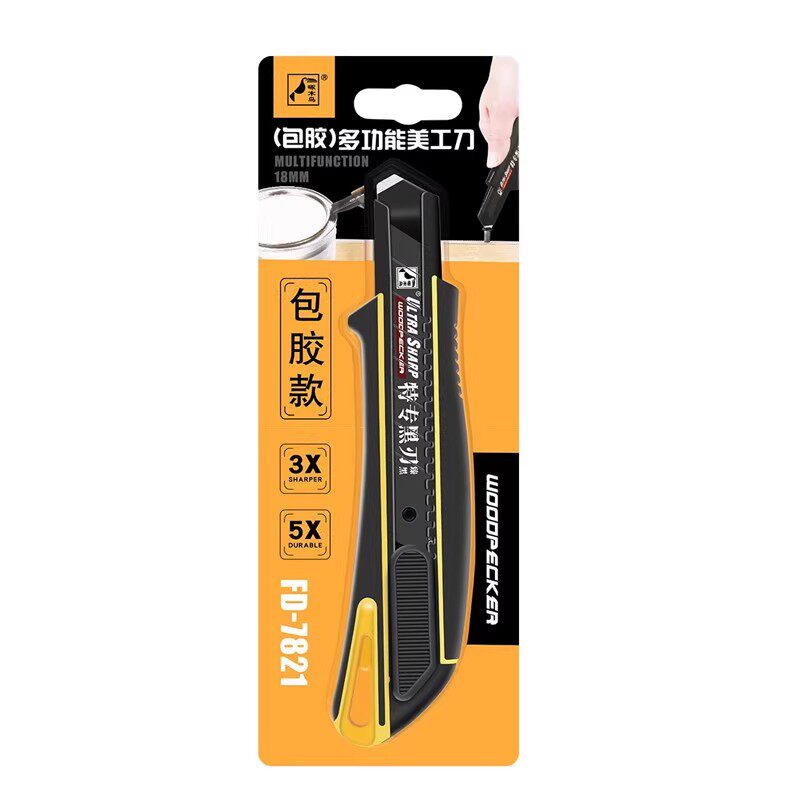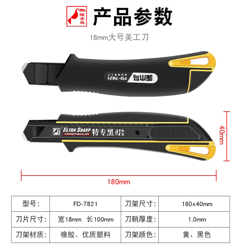 啄木鸟美工刀架壁纸刀一体包胶大号18MM介刀重型裁纸介刀FD-7821