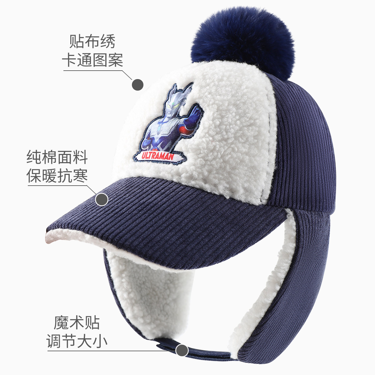 奥特曼儿童帽子男童冬季宝宝保暖护耳帽赛罗雷锋帽男孩鸭舌帽加绒