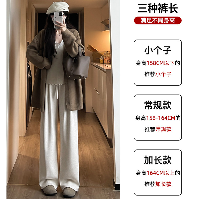 杏色加绒糯米裤女秋冬2025新款高腰垂感直筒羊绒小个子窄版阔腿裤