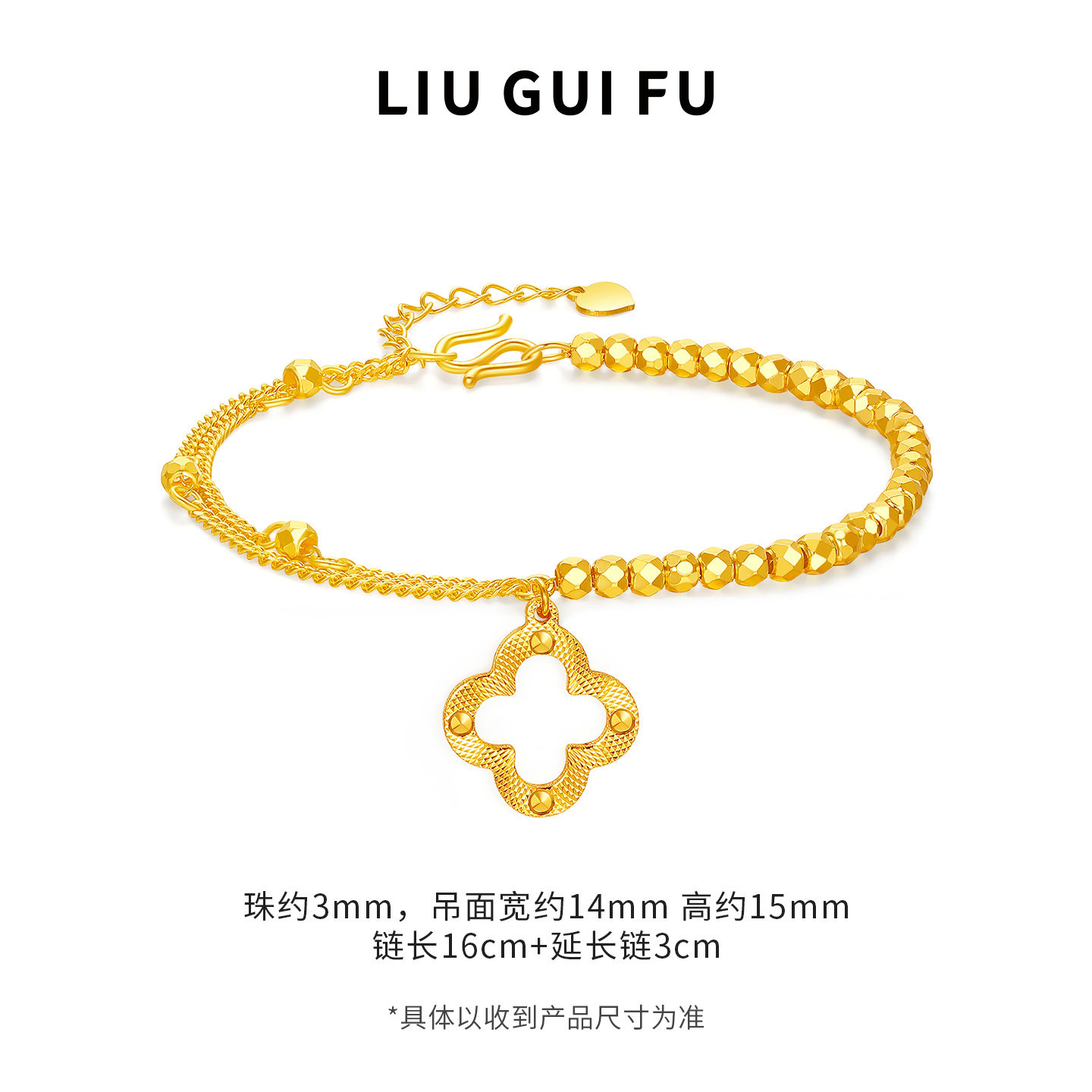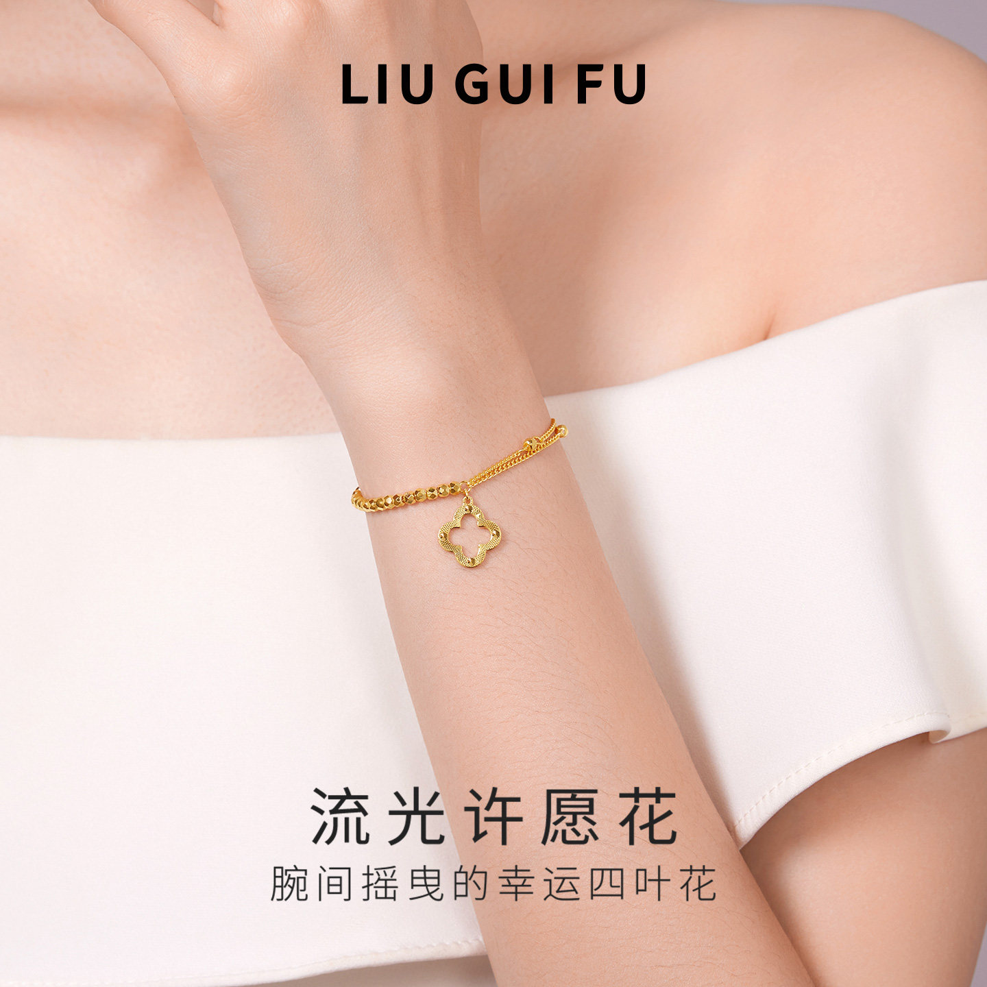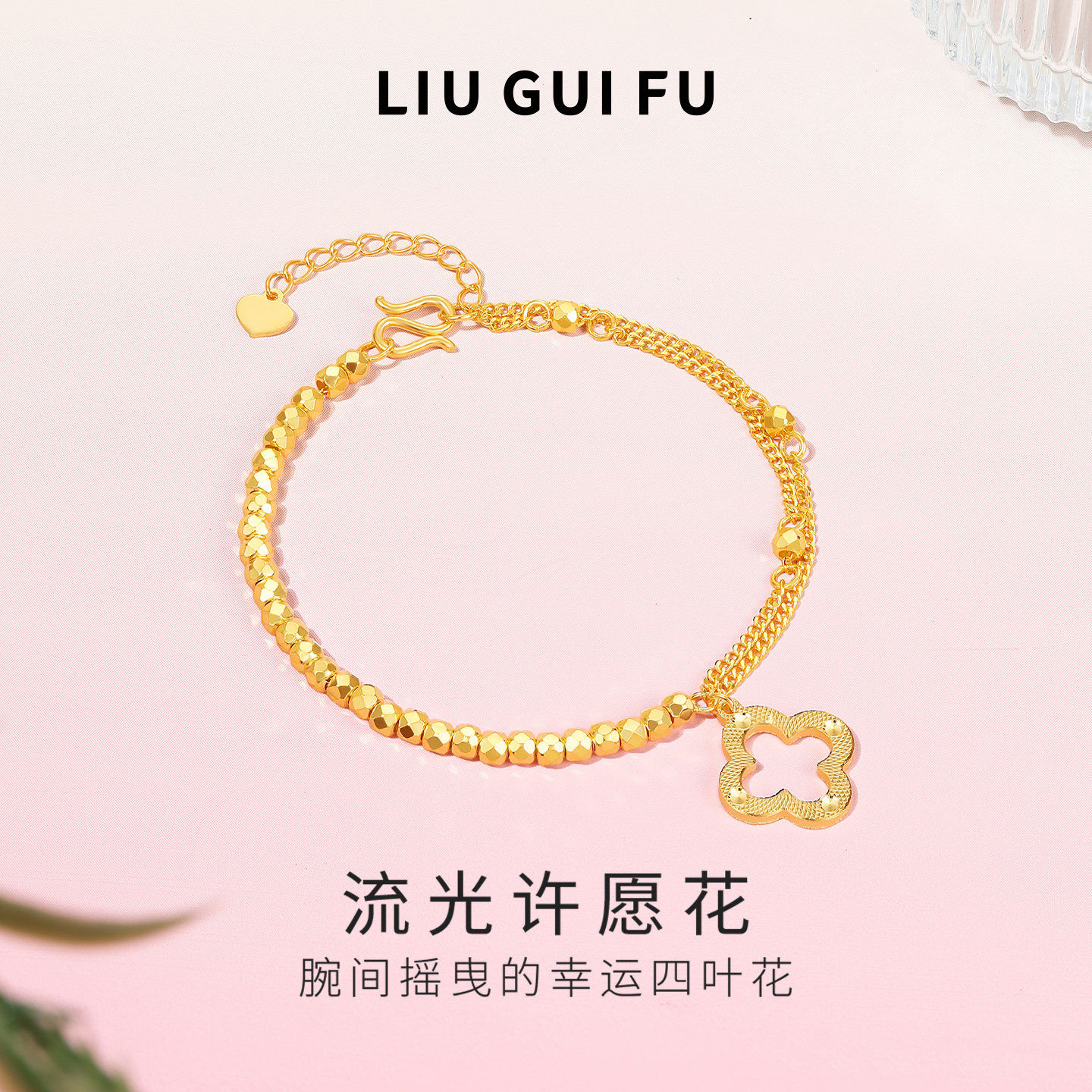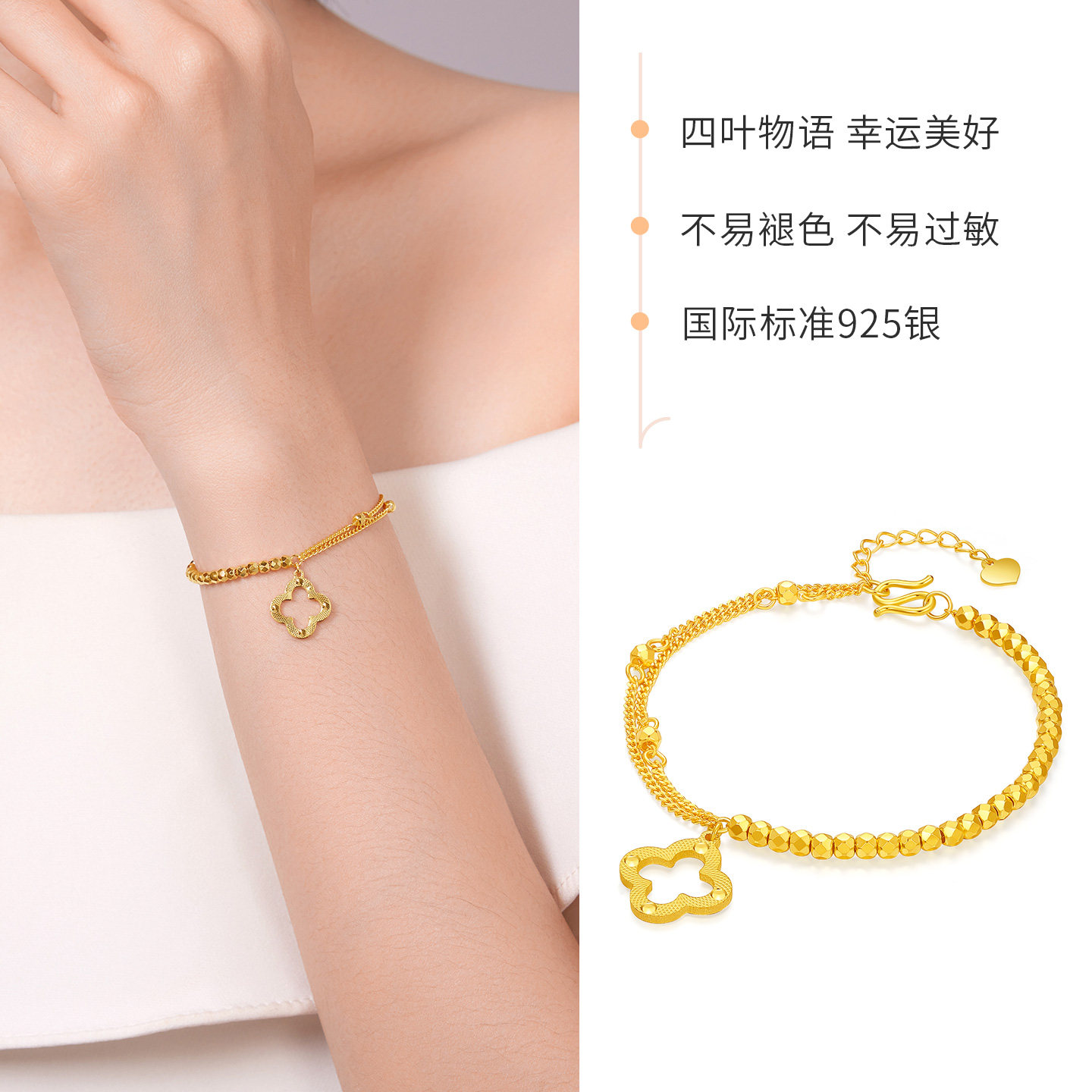 六桂福珠宝四叶草碎银子黄金色手链轻奢蹦迪珠首饰圣诞礼物送女友
