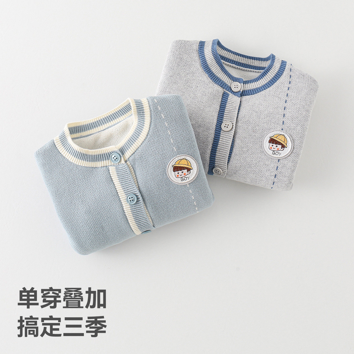 贝肽斯婴儿外套加绒毛衣秋冬2025新款男女宝宝针织衫上衣儿童开衫