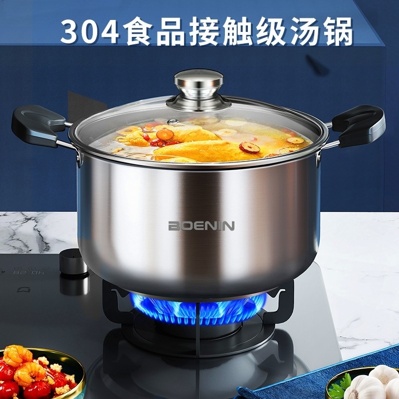 不锈钢汤锅304食品级特厚家用蒸炖肉燃气电磁炉专用双耳蒸煮锅