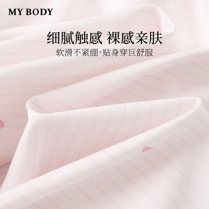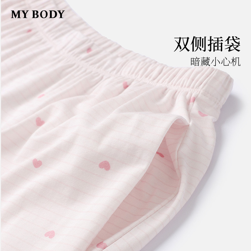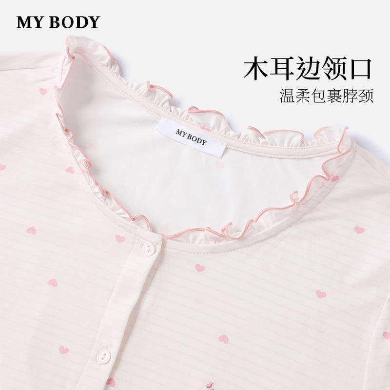 商场同款MYBODY新款睡衣甜美纯欲蕾丝荷叶边亲肤棉质家居服三件套