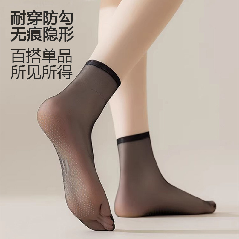 丝袜女春夏短袜防滑点胶底夏季薄款透气防勾丝透明无痕水晶袜超薄