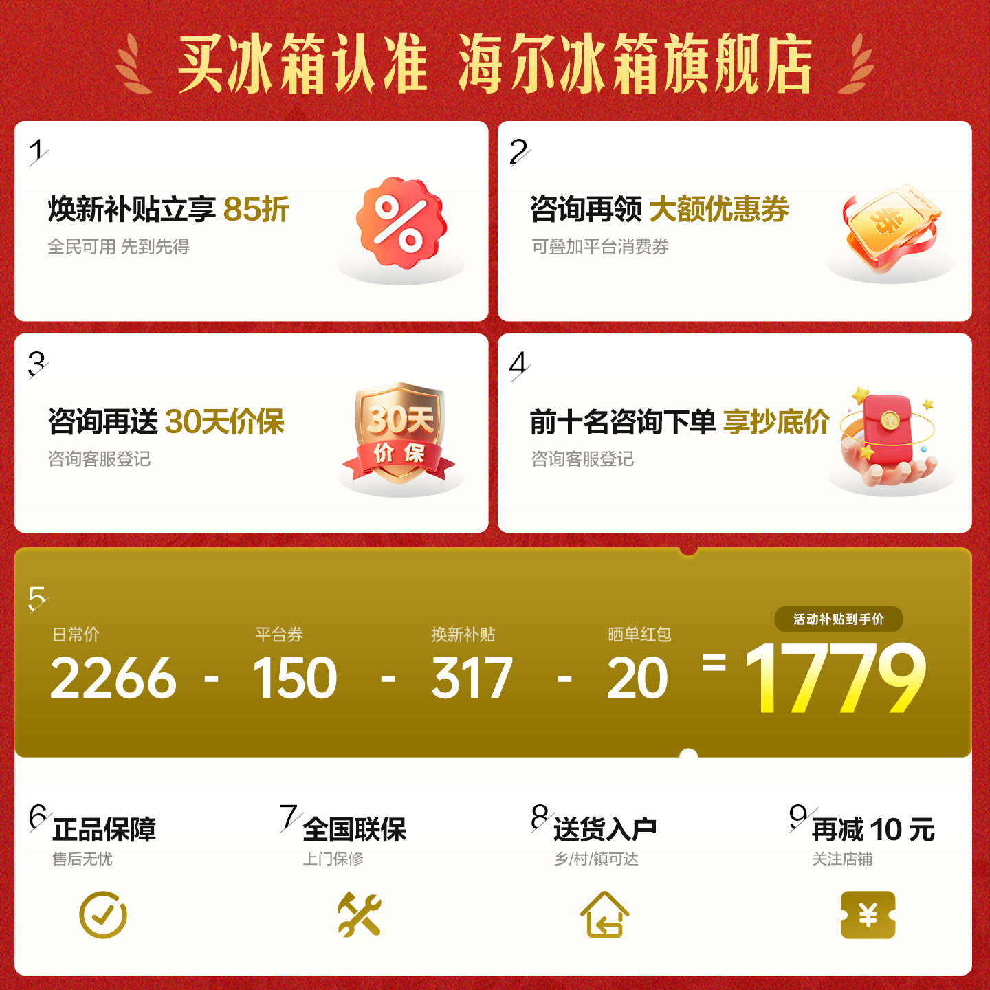 海尔冰箱以旧换新补贴476L十字双开门大容量家用一级能效无霜官方
