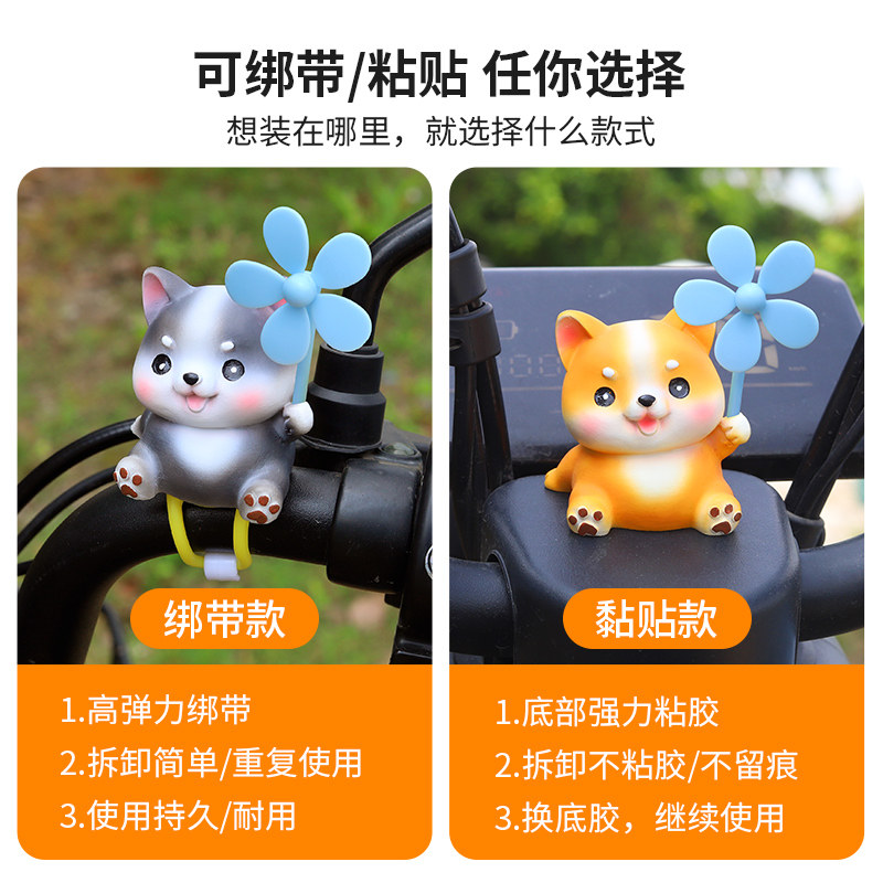 可爱柯基小黄鸭风车电瓶车汽车载摆件自行车电动摩托装饰品小挂件
