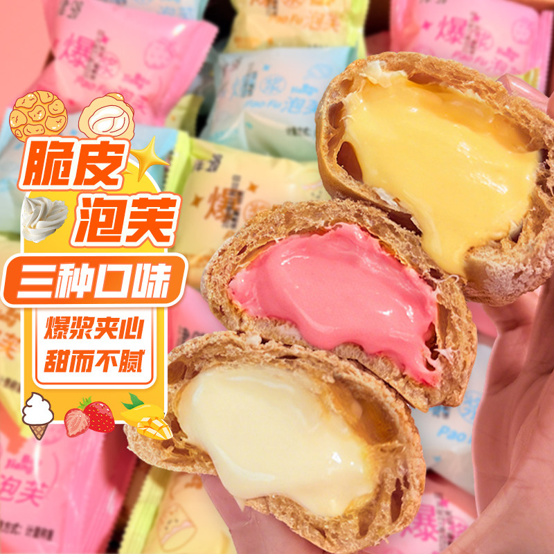 爆浆奶油泡芙冰淇淋麻薯面包营养早餐小吃网红批发整箱牛乳巧克力