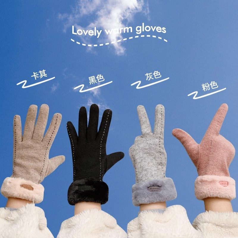 手套秋冬天女加绒保暖可爱德绒女士骑行防寒骑车防风触屏