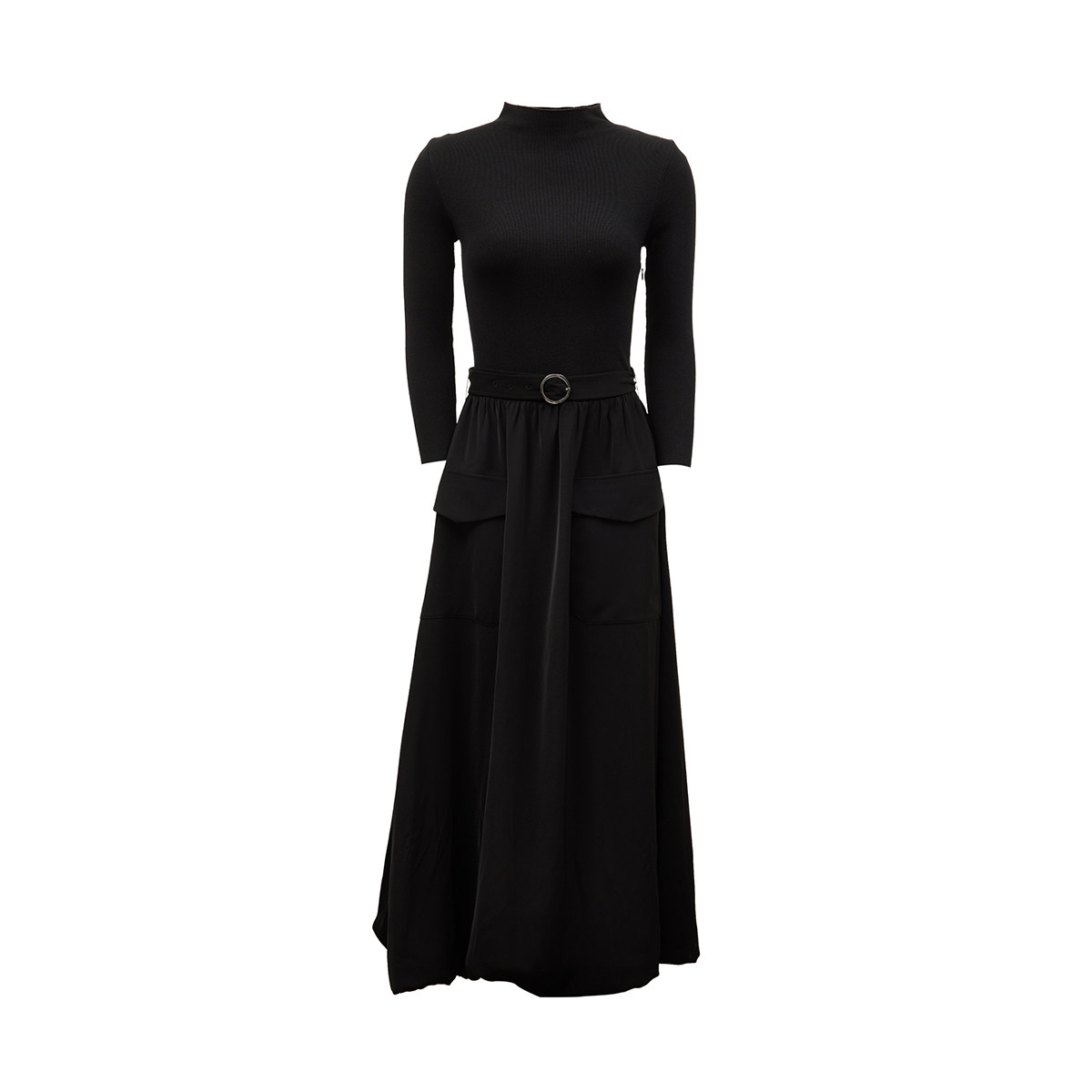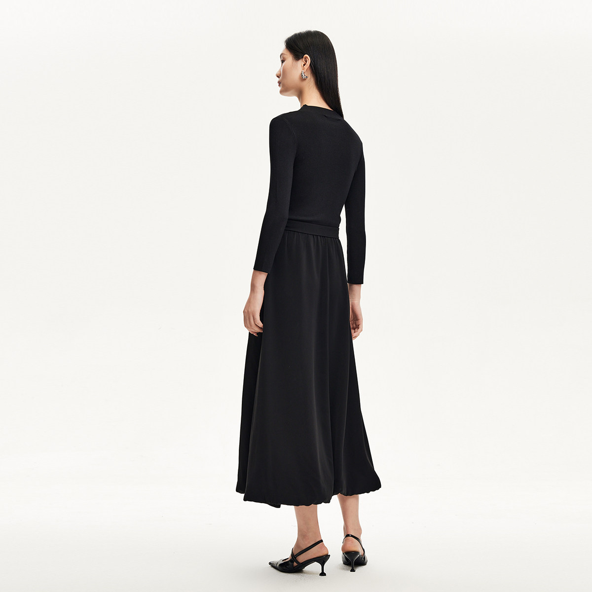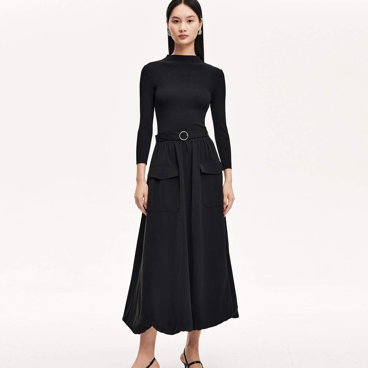 Vero Moda奥莱连衣裙秋冬新款针织拼接A摆显瘦小黑裙时尚通勤流行