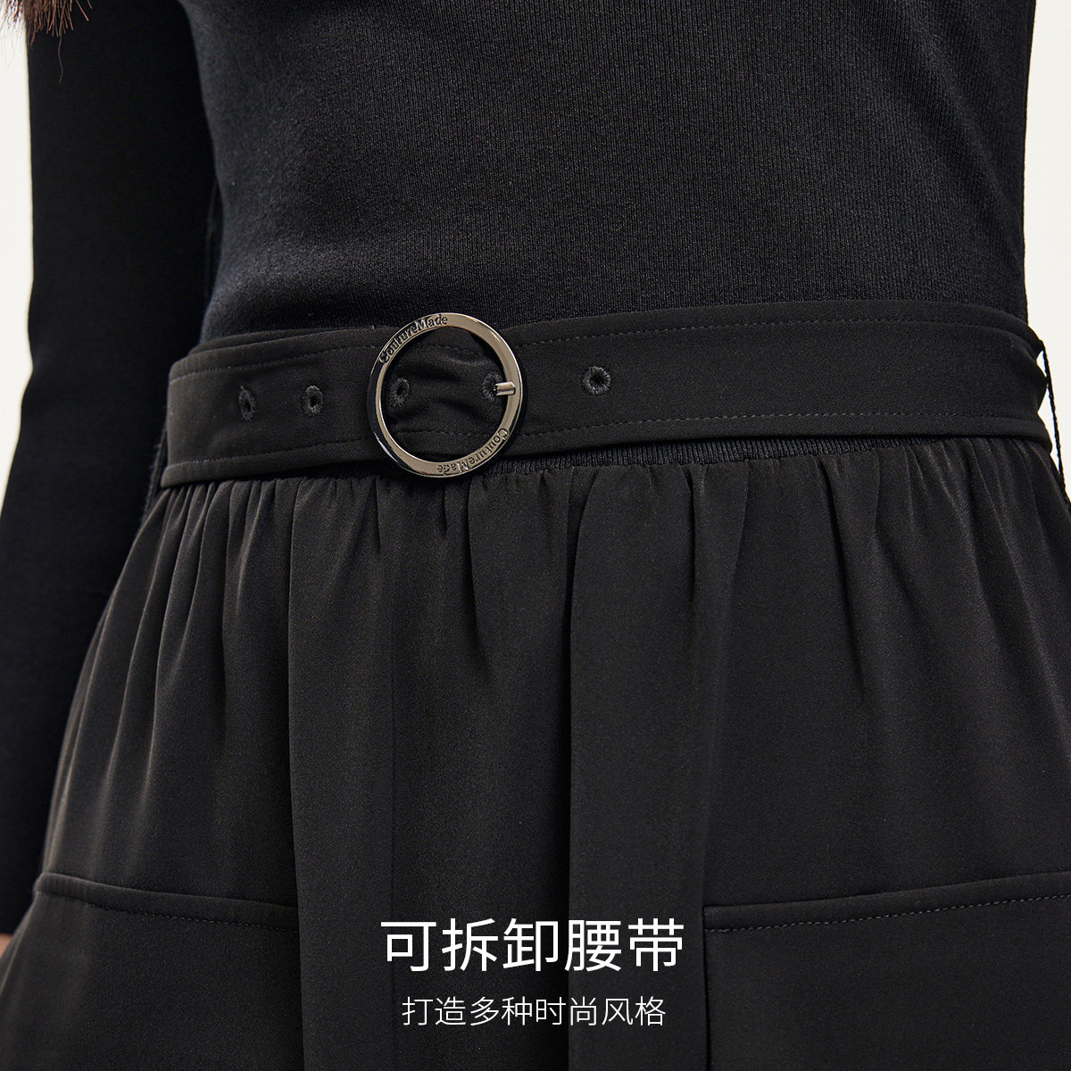 真口袋设计,方便实用可拆卸腰带,遮肉显瘦