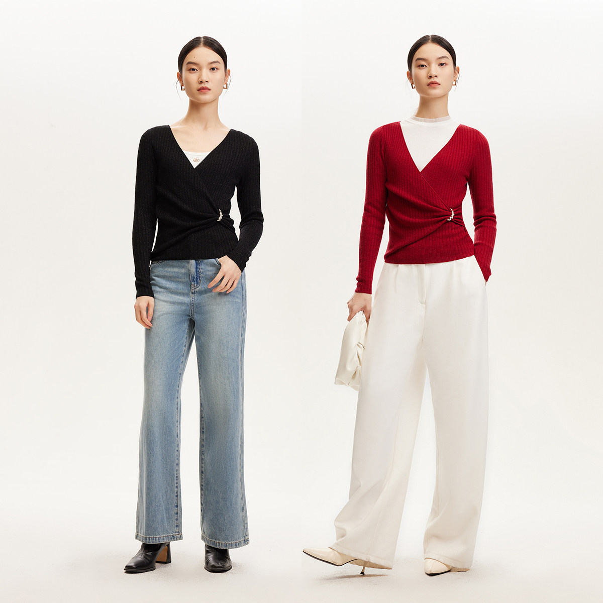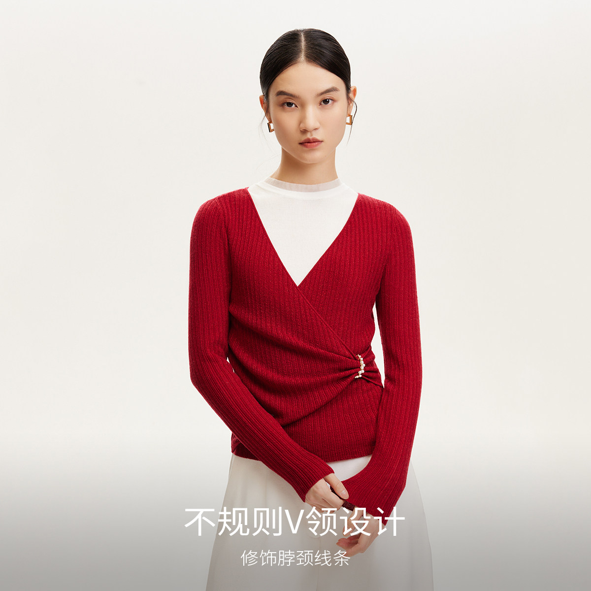 采用不规则V领设计,修饰脖颈线条