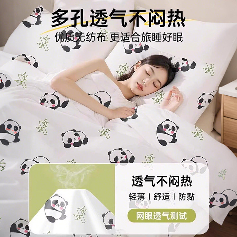 旅行一次性床单被罩枕套酒店出差双人床四件套装加厚隔脏印花睡袋