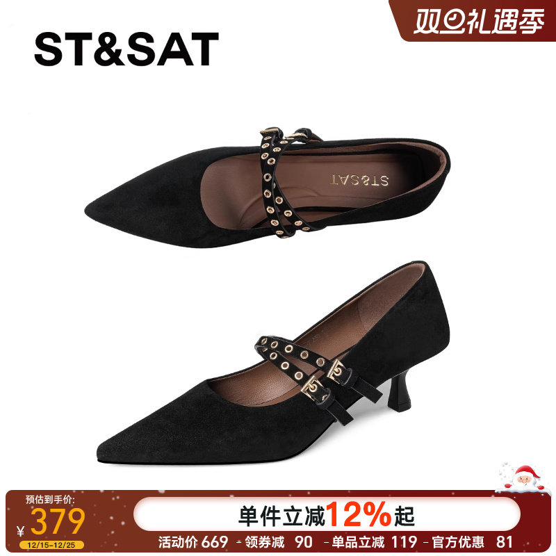 星期六黑色高跟鞋女2025年性感真皮尖头浅口女鞋细跟职业通勤单鞋