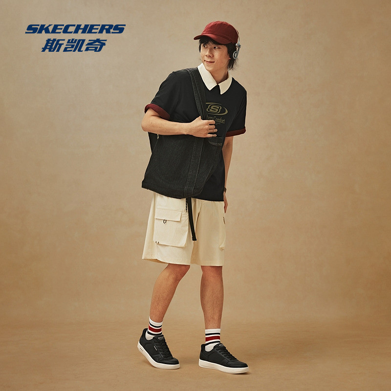 斯凯奇闪穿鞋板鞋一脚蹬男鞋新款小白鞋黑休闲运动鞋防滑耐磨潮流