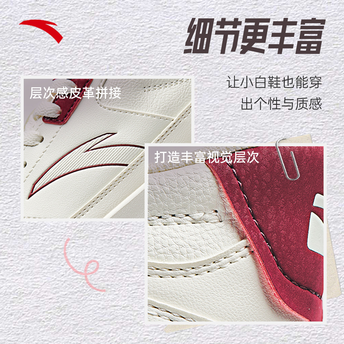 安踏元年小白鞋丨板鞋女鞋舒适厚底增高轻便休闲鞋新年款运动鞋