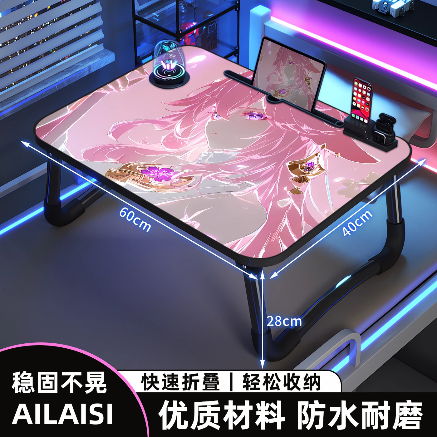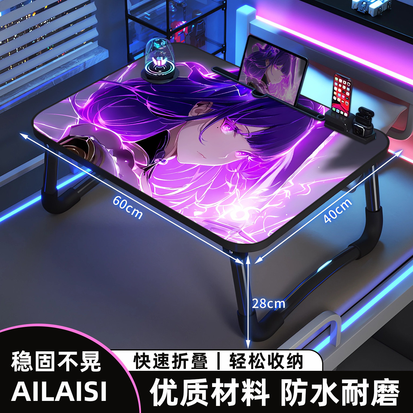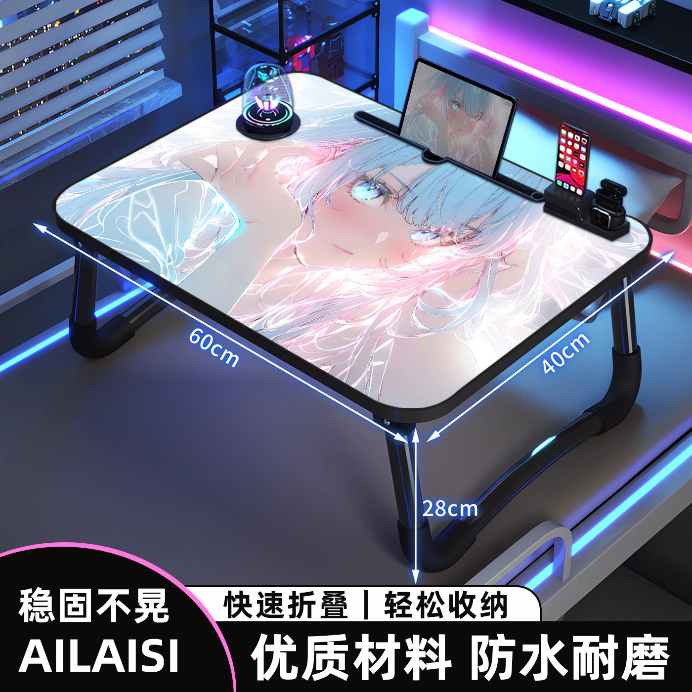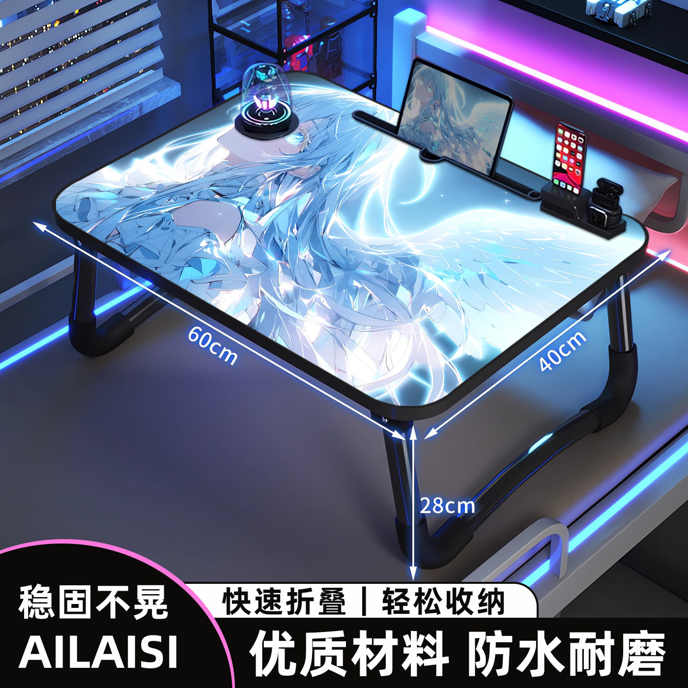 流光渐变床上小桌子可折叠小桌板笔记本电脑桌二次元女孩床上桌子男生宿舍学生懒人桌学习阅读桌卧室床边书桌
