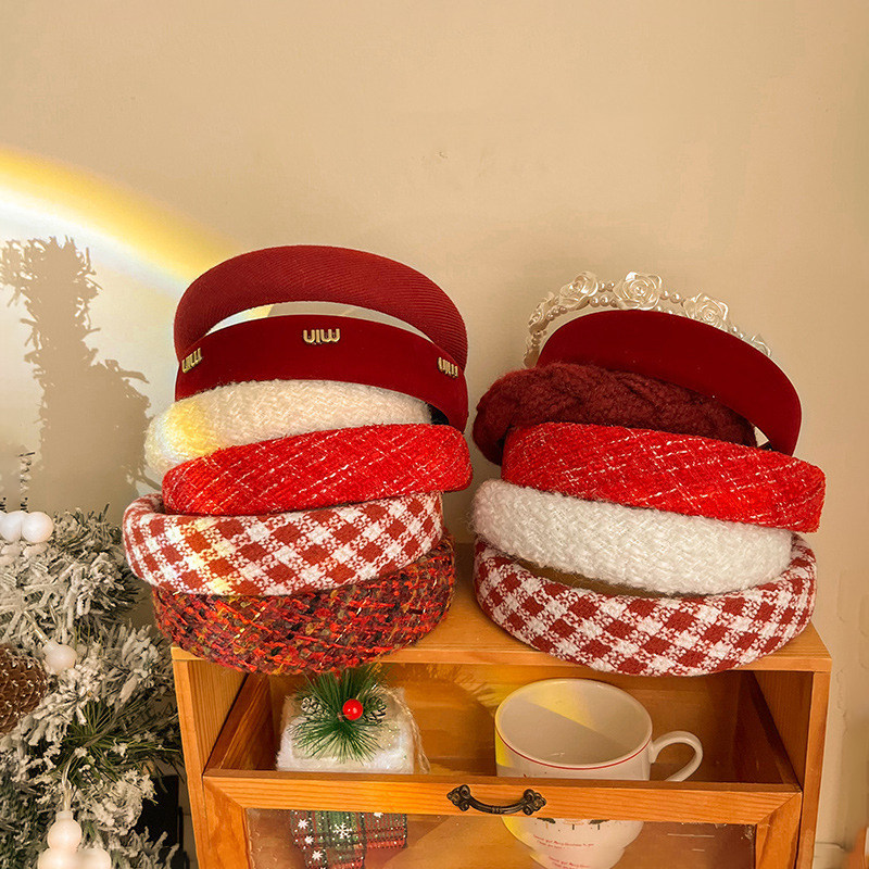红色小香风发箍高颅顶宽边海绵洗脸高级感头箍甜美秋冬圣诞节发饰