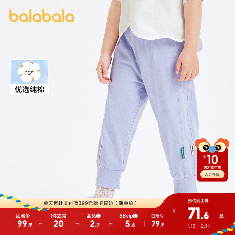巴拉巴拉童装儿童裤子男童女童夏百搭防蚊裤透气薄款束脚休闲长裤