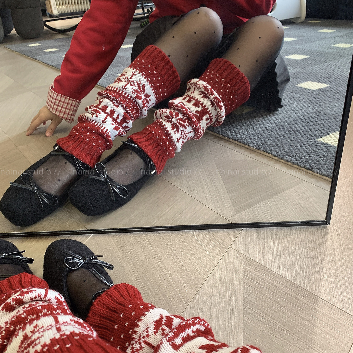 费尔岛袜套~加厚款!白色堆堆袜子配雪地靴秋冬保暖腿套小腿袜女