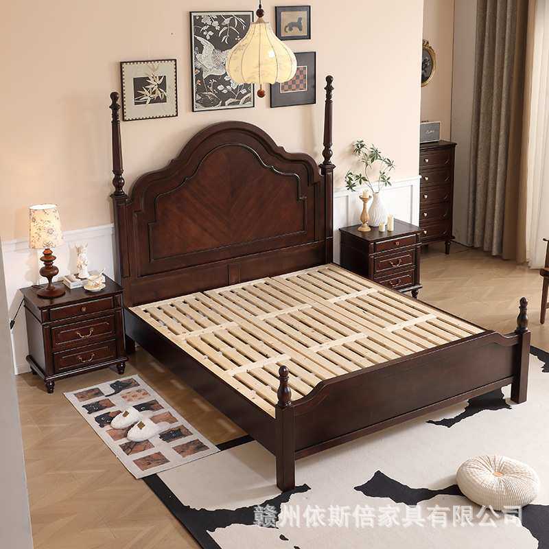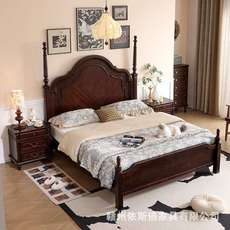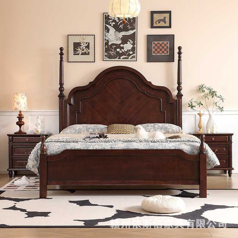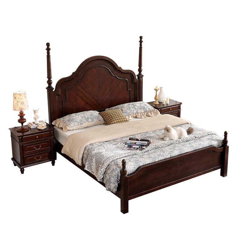 安娜实木床1.8米双人床主卧2米大床简约1.5M黑胡桃色婚床中古风