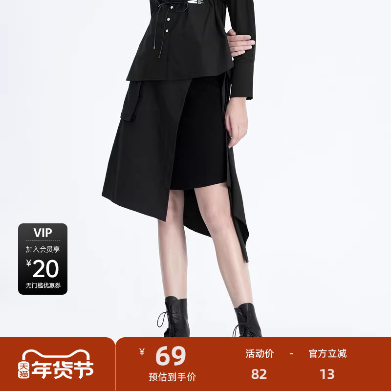 sdeer圣迪奥a字半身裙新品女装酷感拼接字母不规则长裙S20481108