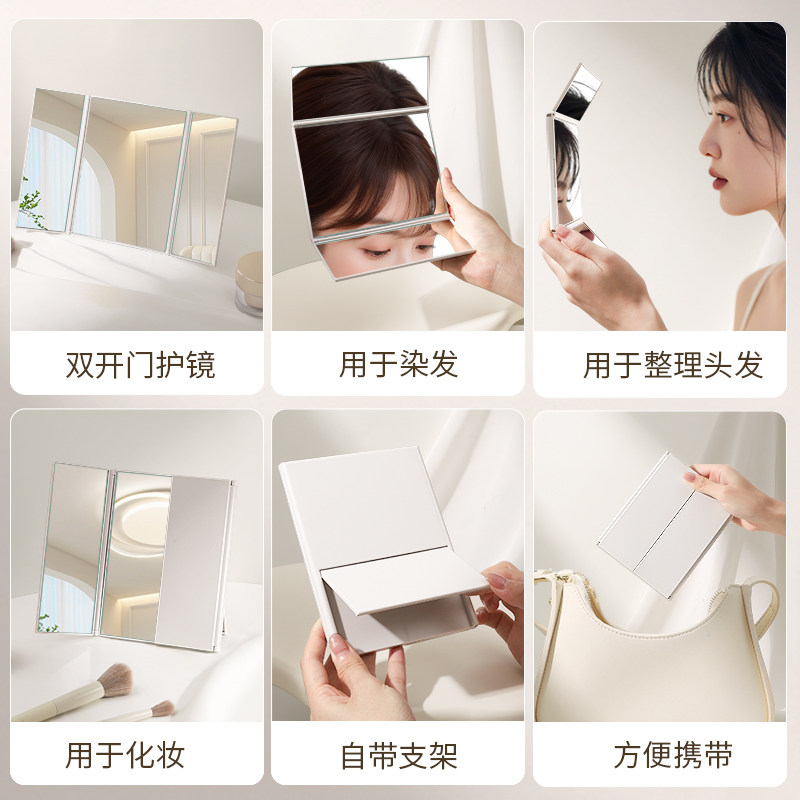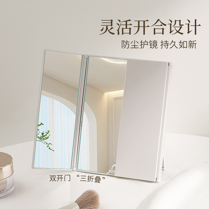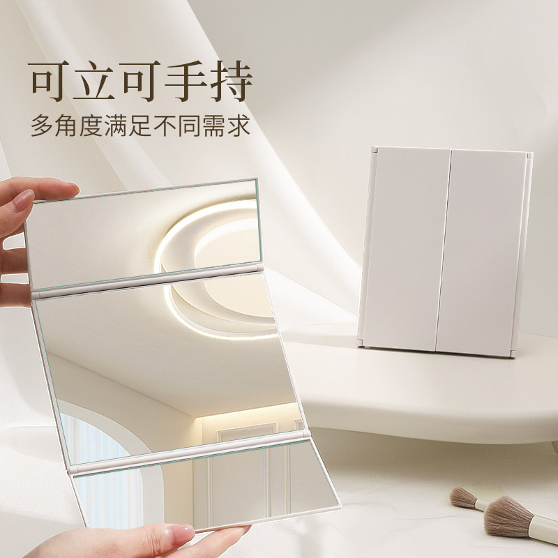 三面镜子台式折叠学生宿舍办公室便携塑料化妆镜多角度翻盖三折镜