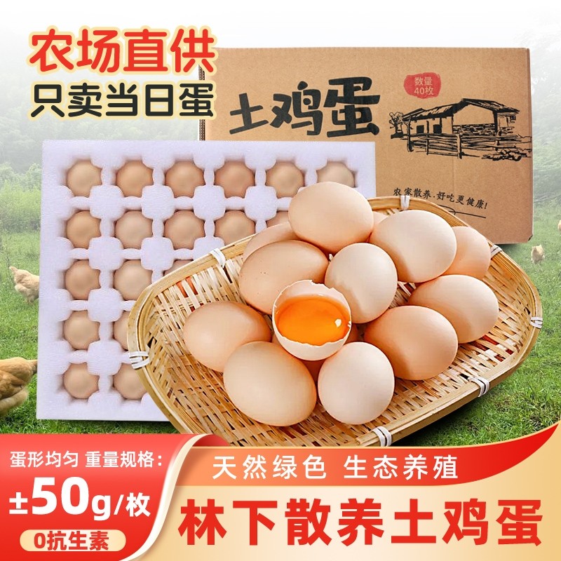 正宗散养土鸡蛋新鲜农村野外月子孕妇本绿乌柴鸡蛋虫草笨鸡蛋50枚