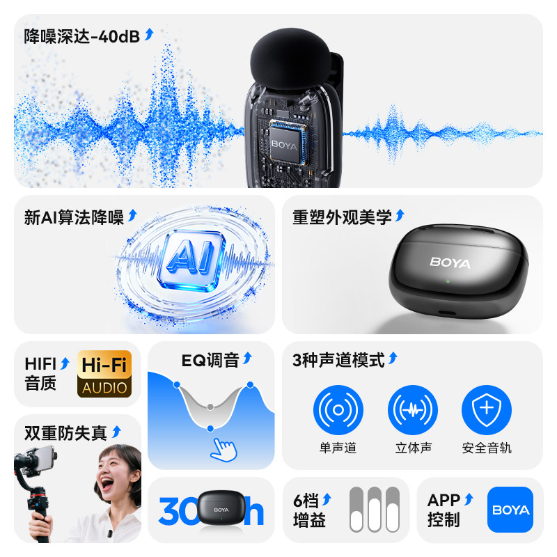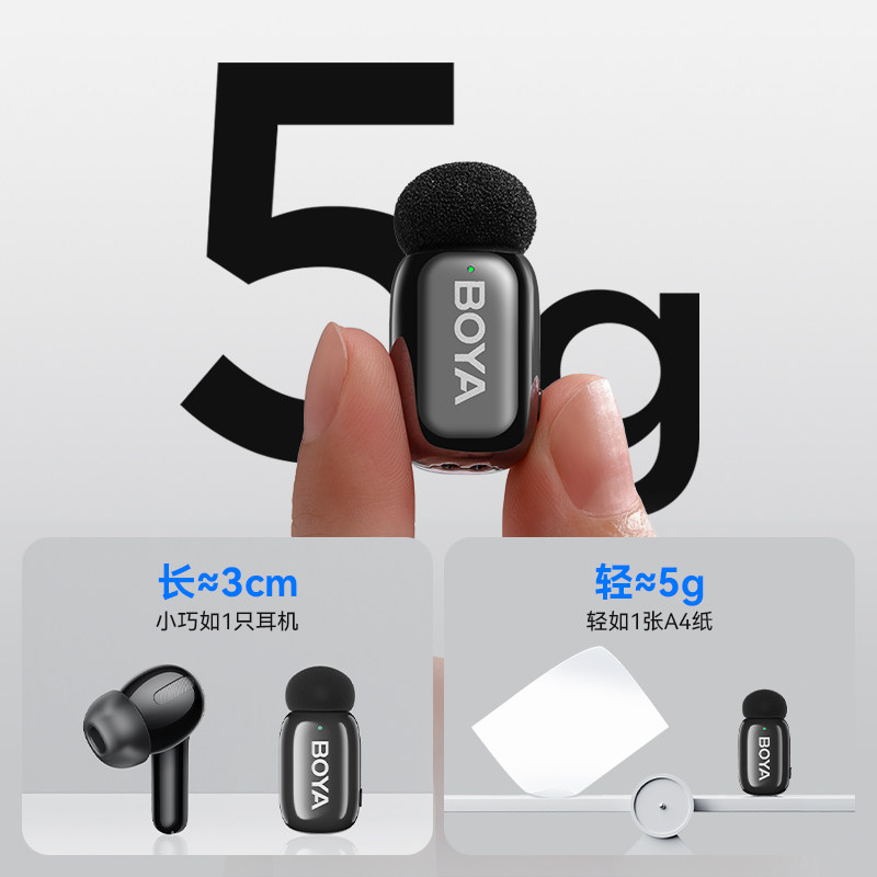 博雅BOYA mini2迷你麦克风 无线夹领式直播降噪小专业收音录音器