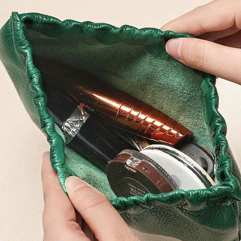 复古便携超薄口红包小众植鞣皮质手拿迷你零钱收纳包日式简约卡包