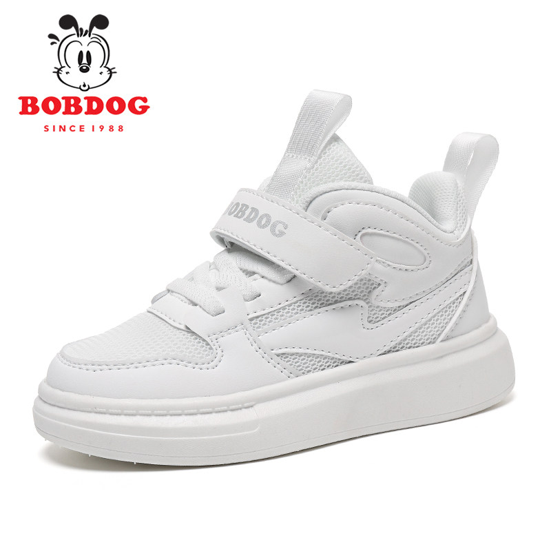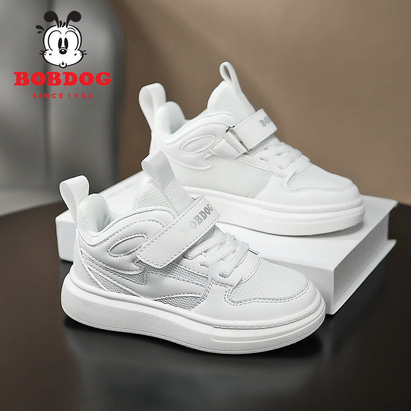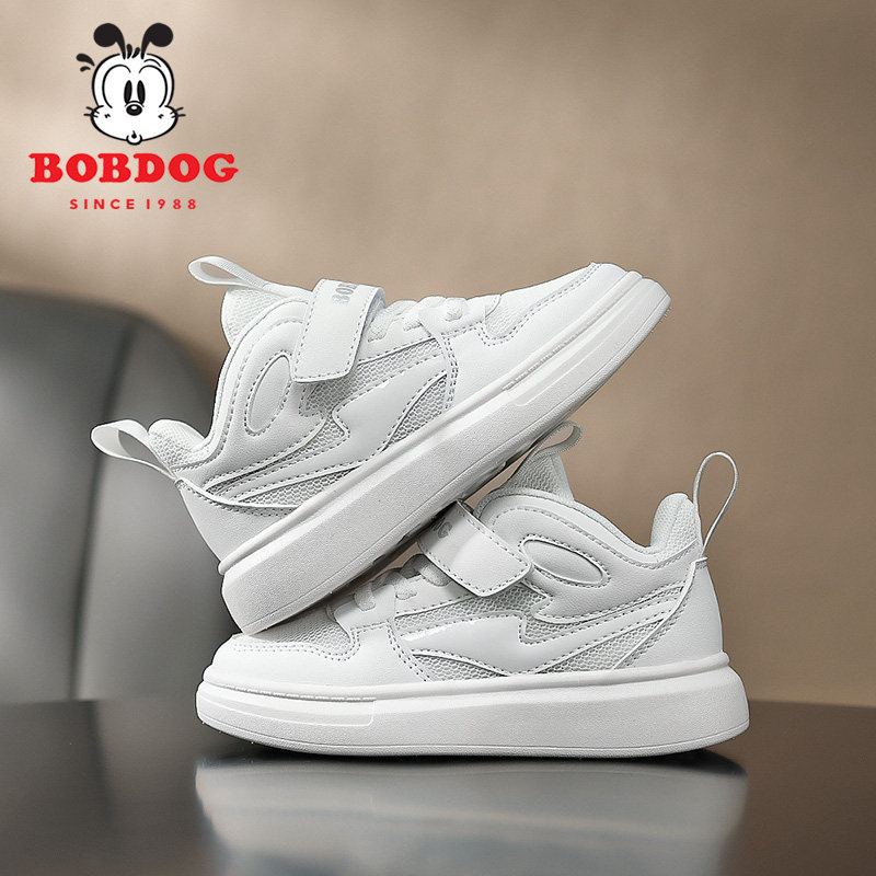 巴布豆男童板鞋2026春秋小白鞋透气白色女童运动鞋子皮面网面双网