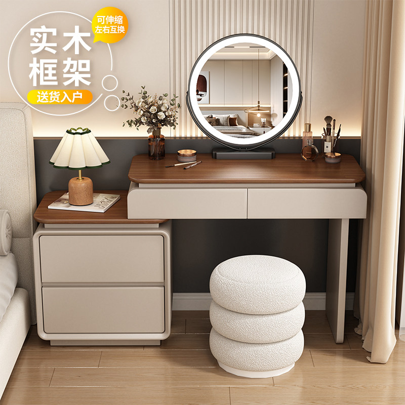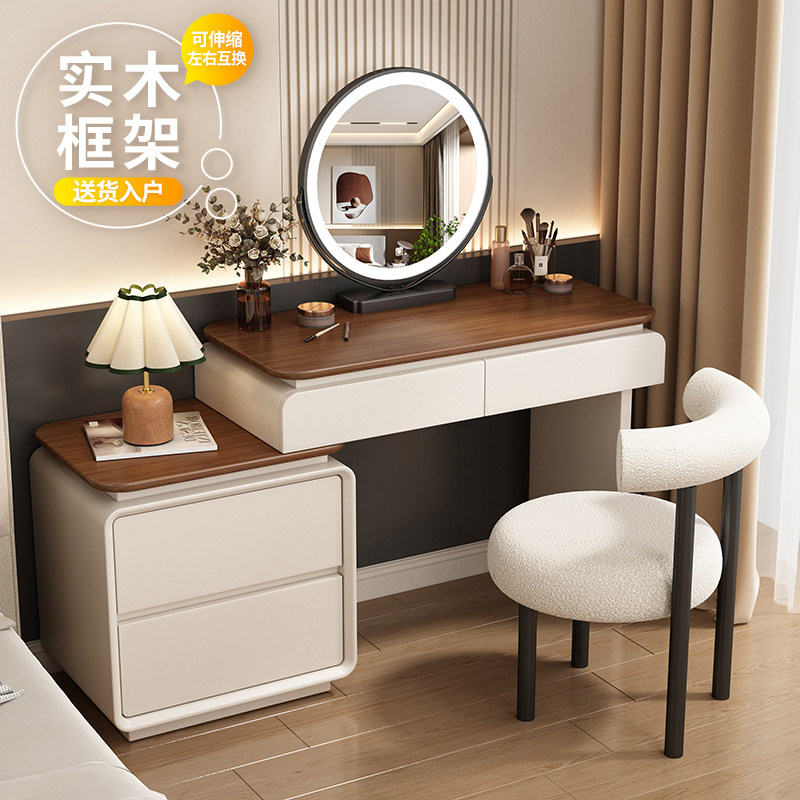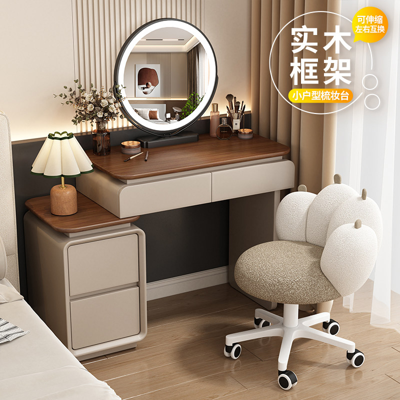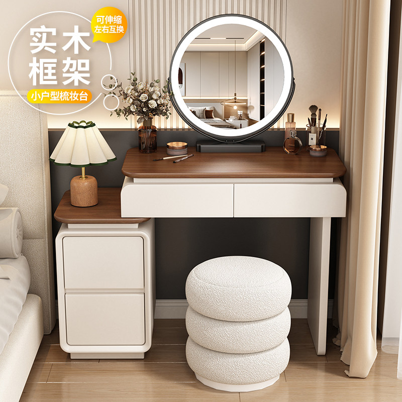 中古奶油风梳妆台卧室现代简约实木化妆台斗柜收纳一体小户化妆桌