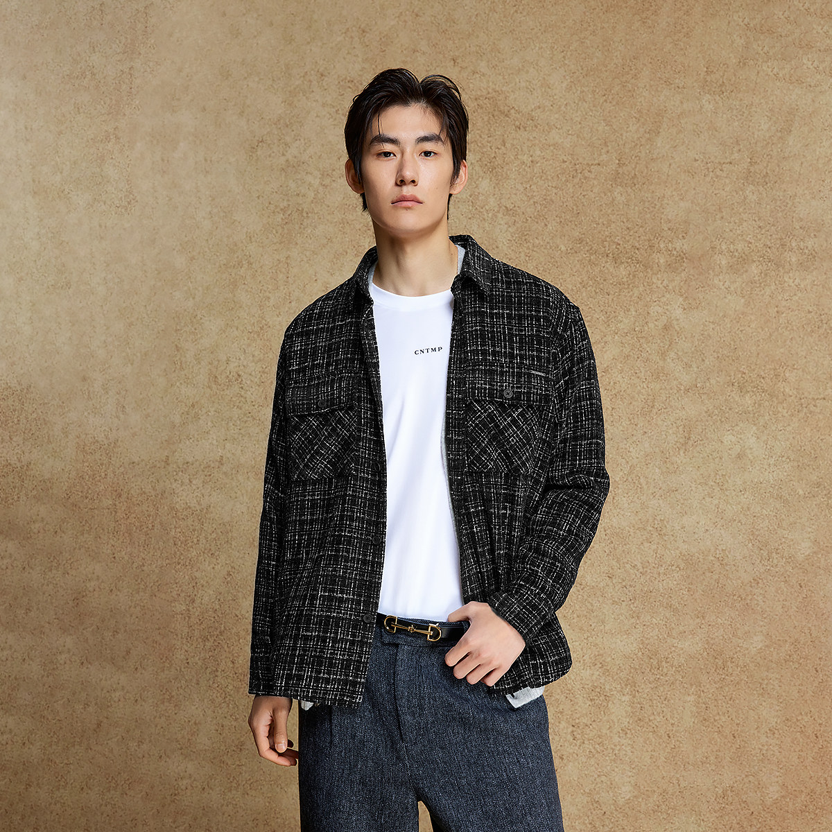 杰克琼斯男装秋季新款衬衫百搭时尚简约舒适格纹宽松休闲长袖外套