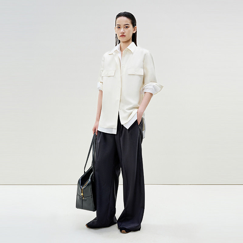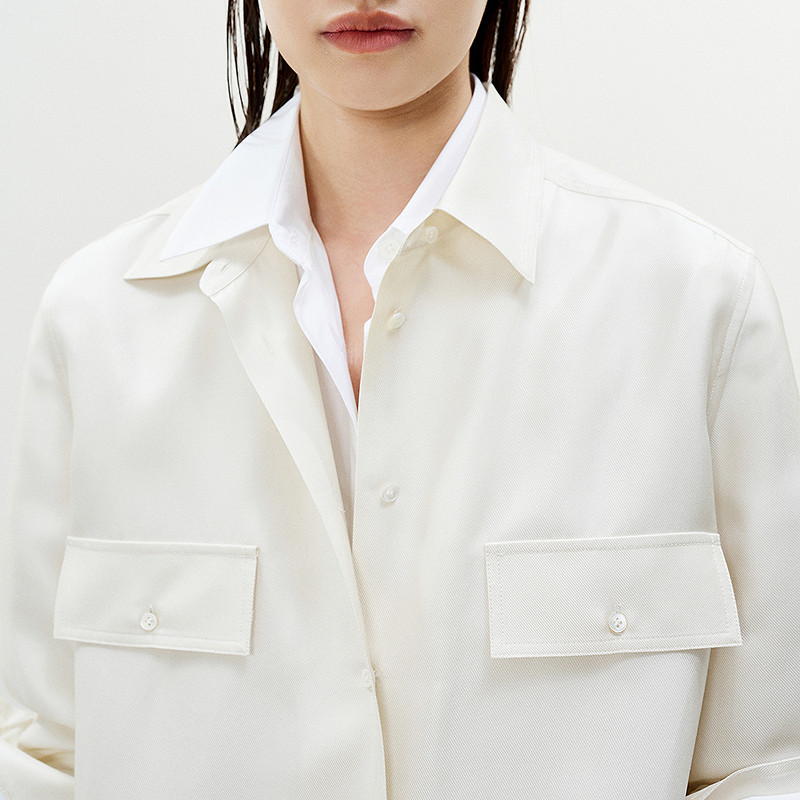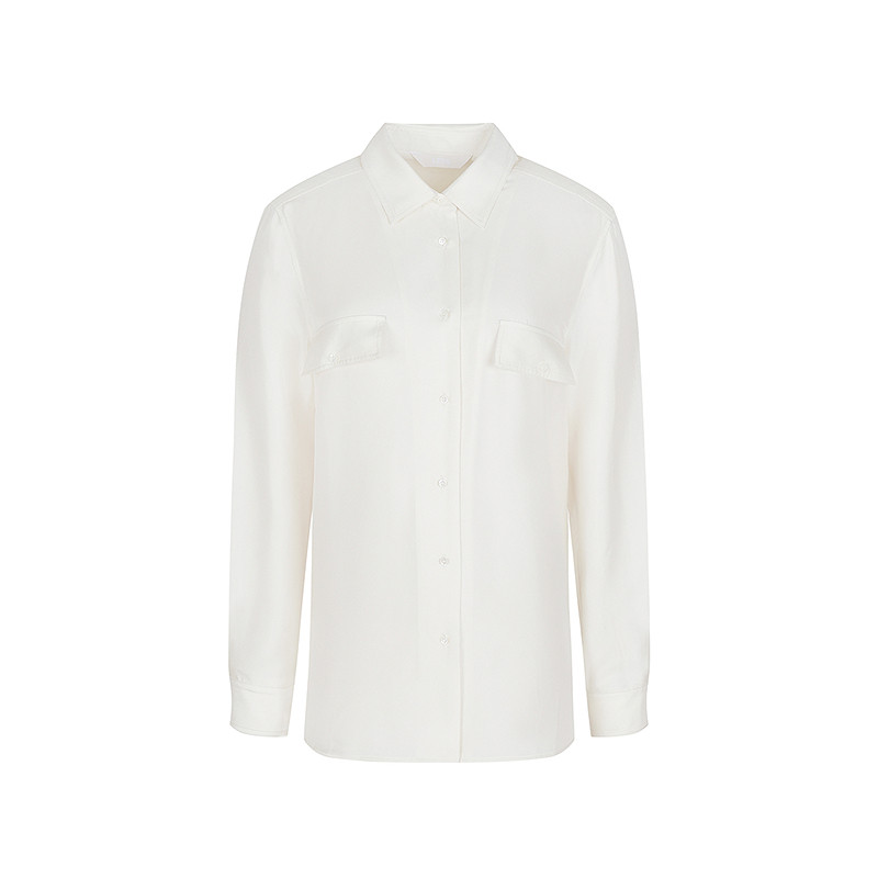 LESS春季轻工装衬衫女通勤休闲纯色桑蚕真丝白衬衫女2P3212630