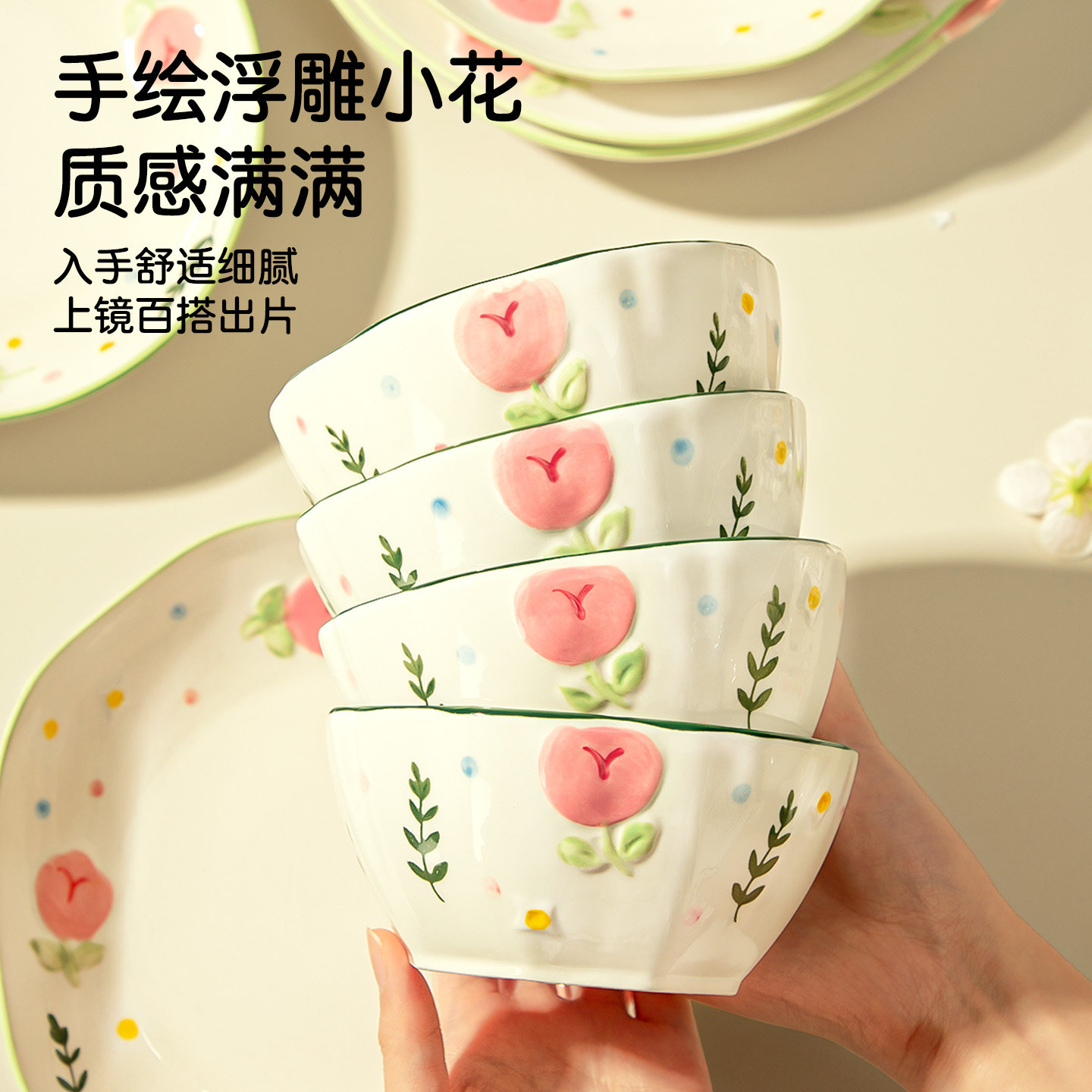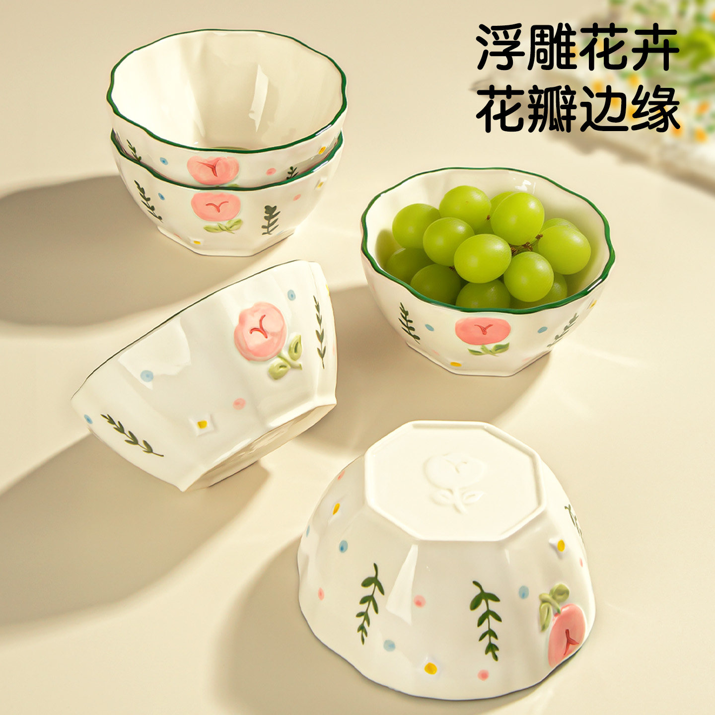 碗家用2026新款浮雕5英寸大号小清新高颜值特别好看个人专用饭碗
