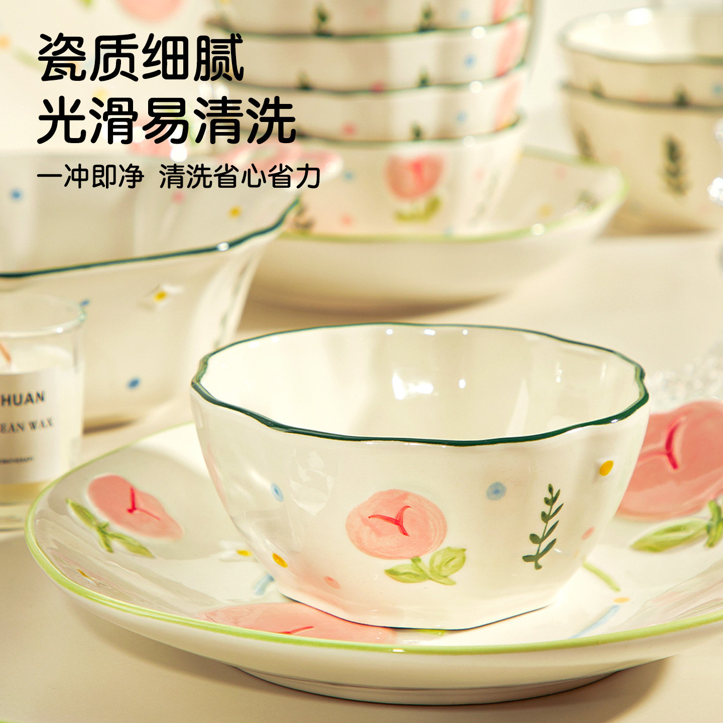 奶油风陶瓷碗家用卡通菜盘子可爱米饭碗汤碗釉下彩儿童餐具耐高温