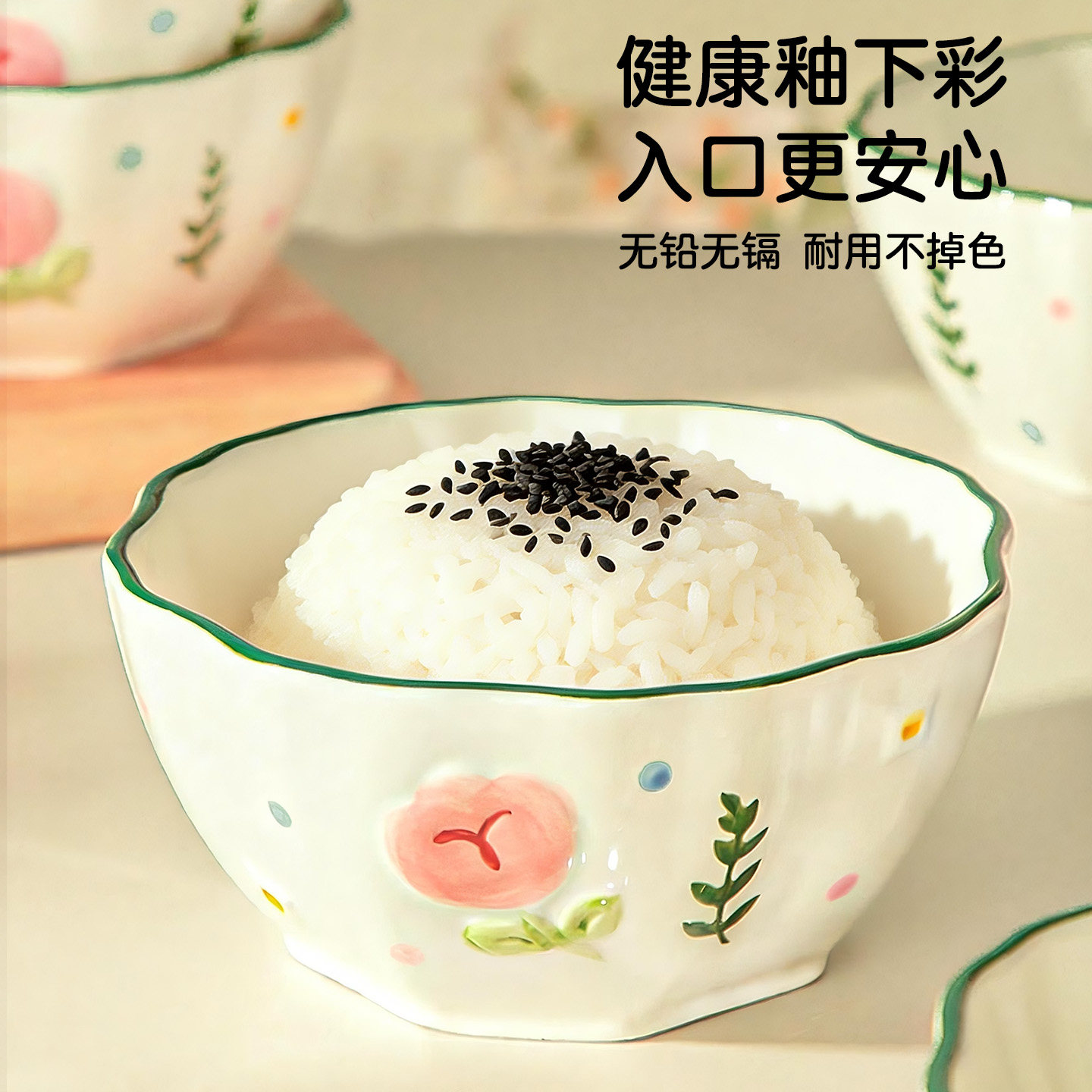 陶瓷餐具日式创意祝福水果碗碗家用吃饭专用小碗精致可爱饭碗