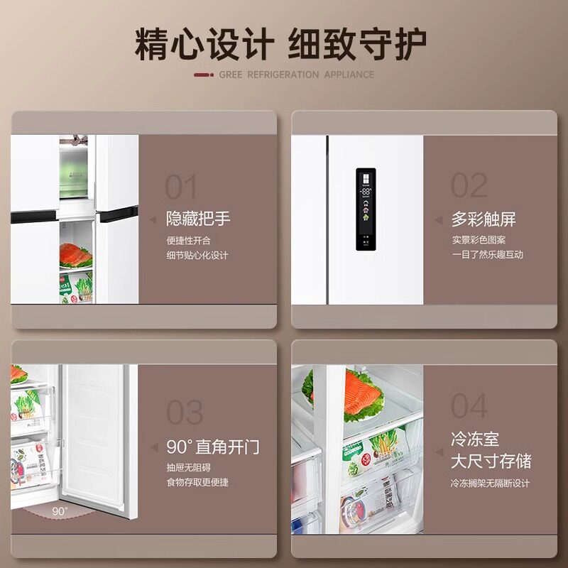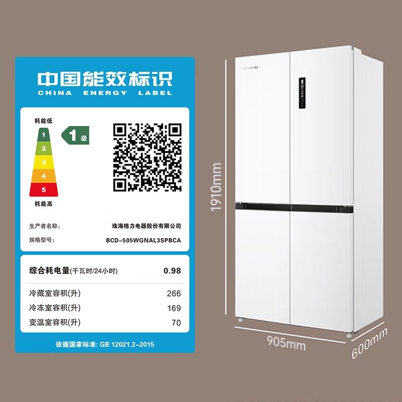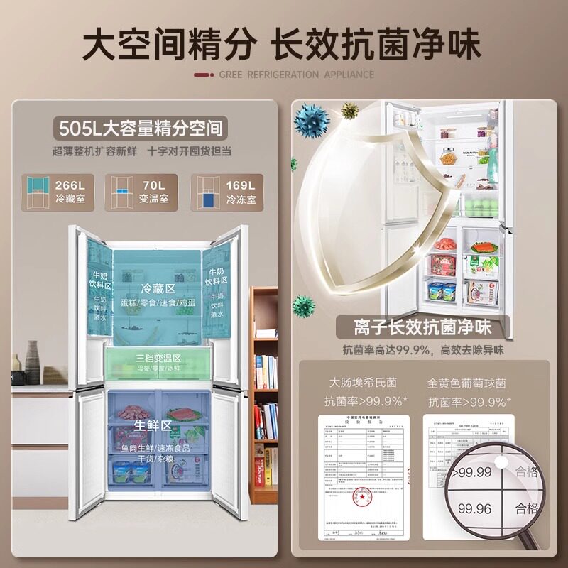 格力冰箱505升超薄零嵌十字对开四开门白色风冷无霜一级节能