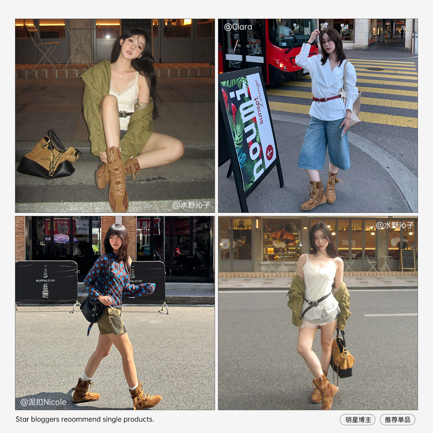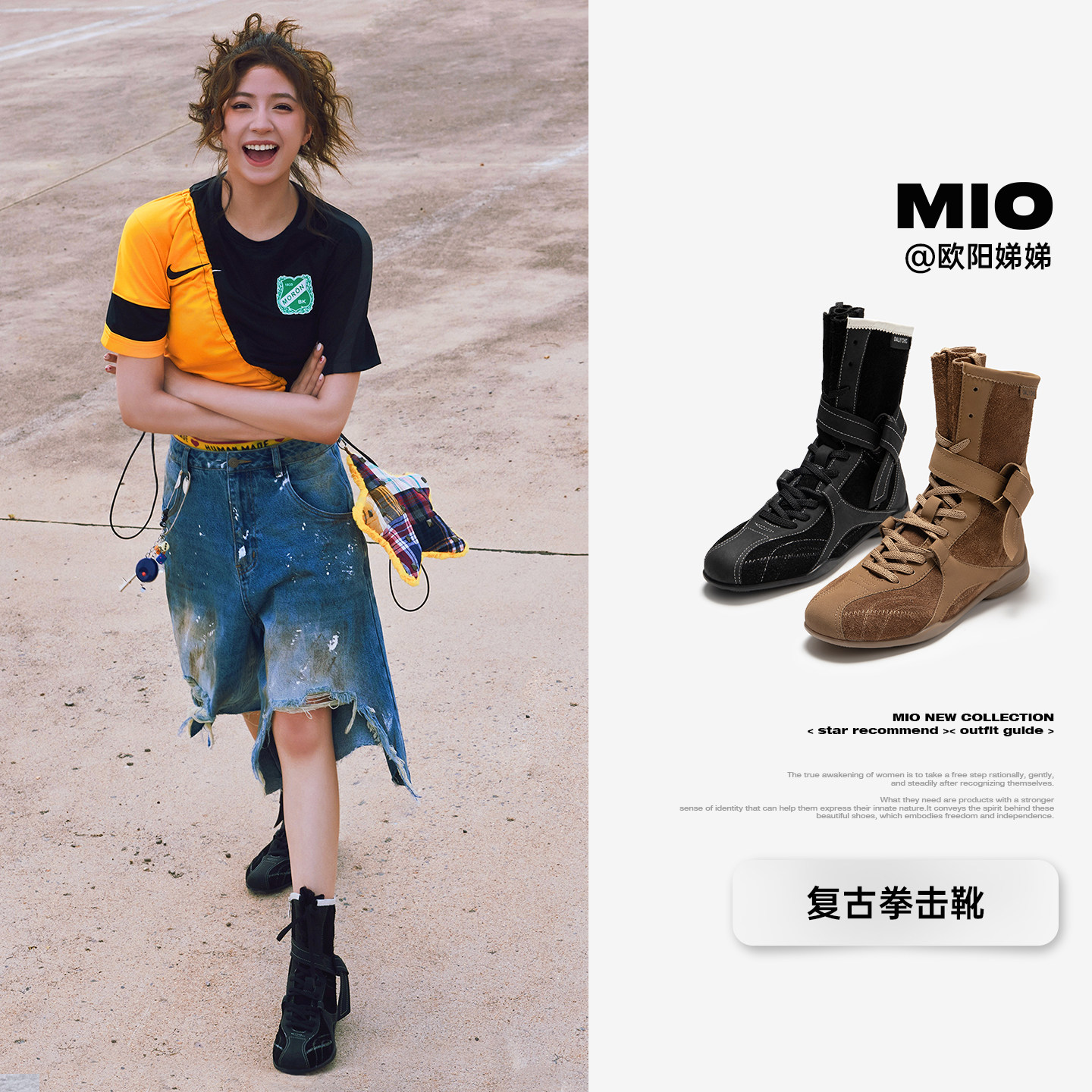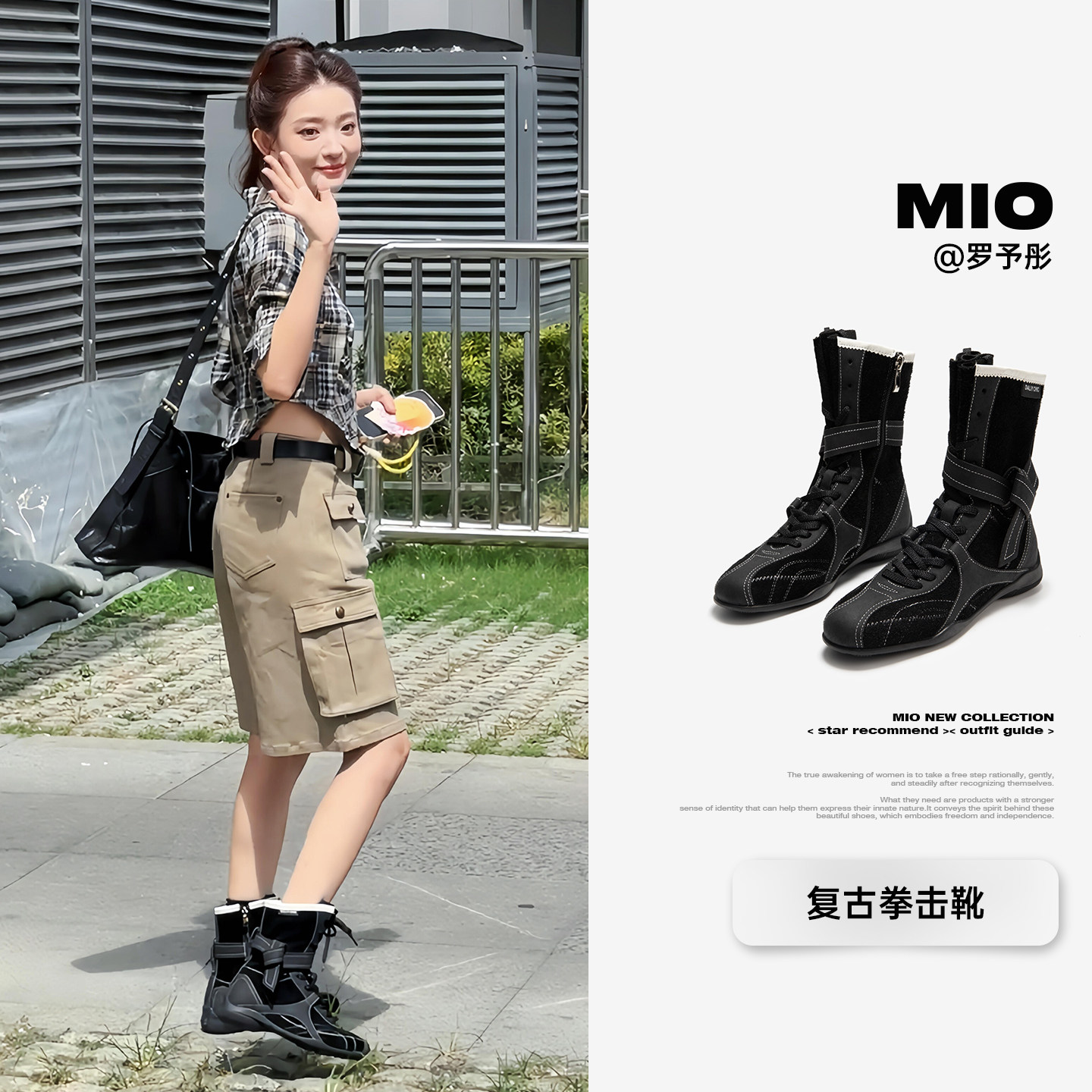 欧阳娣娣同款|MIO米奥高帮赛车靴女2025新款拳击靴马丁靴绑带长靴