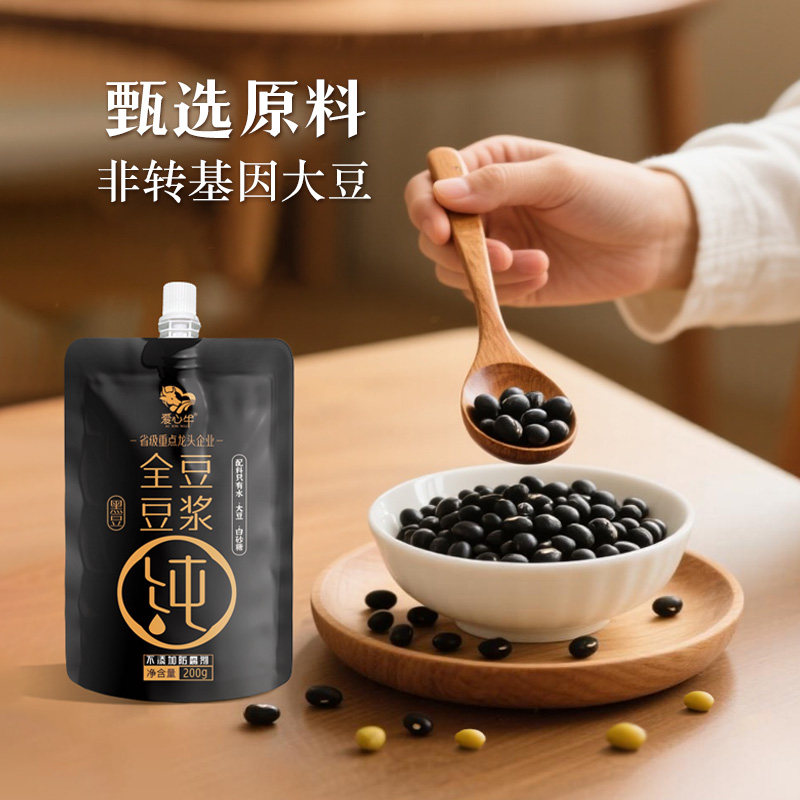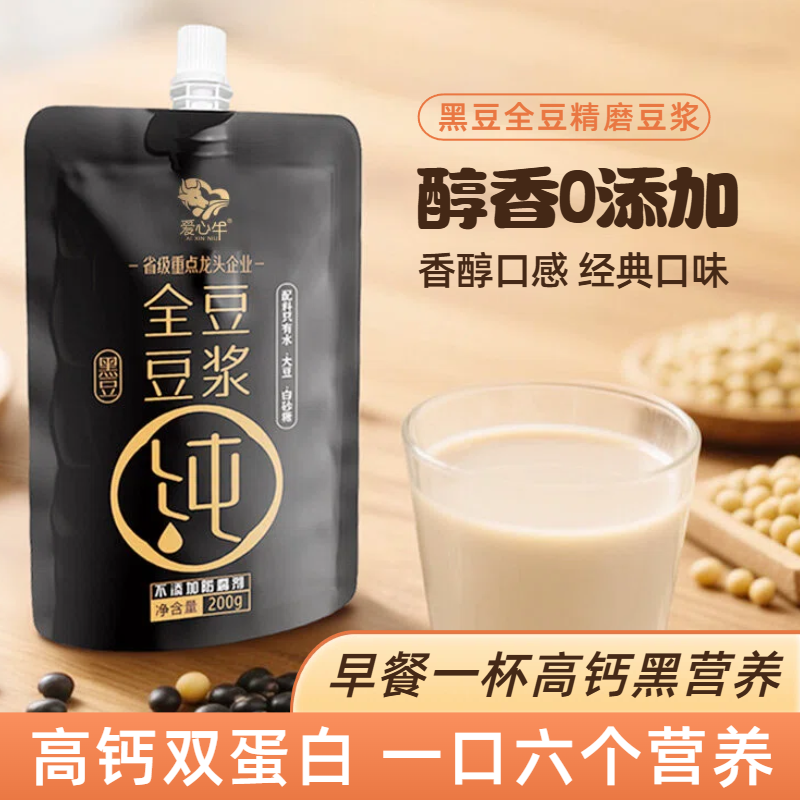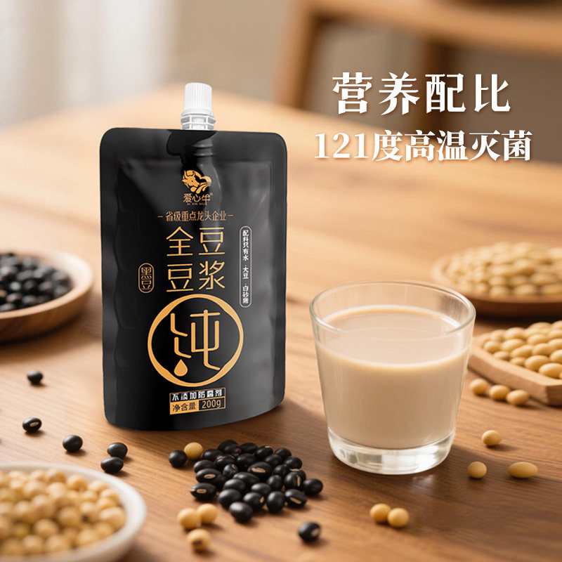 工厂爱心牛全豆黑豆浆袋装200g即饮早餐奶营养品批发高钙健康饱腹