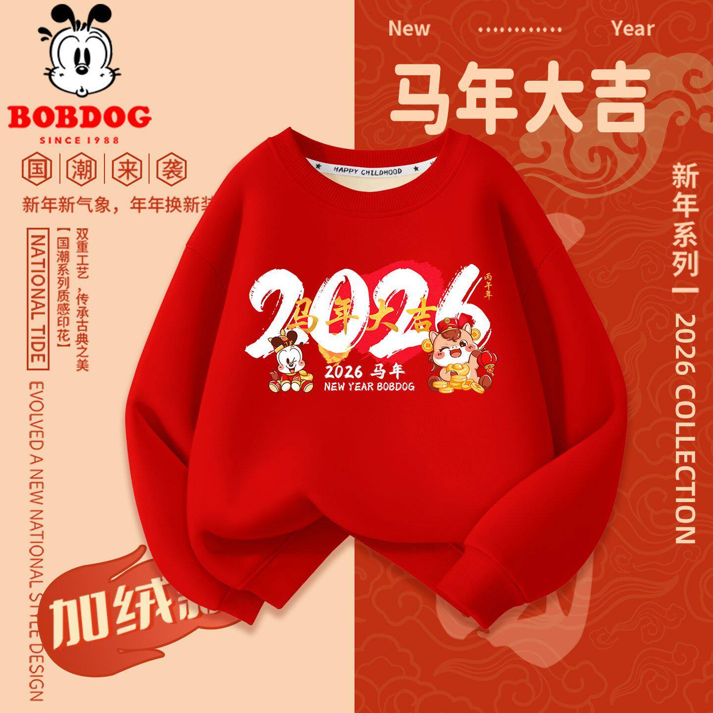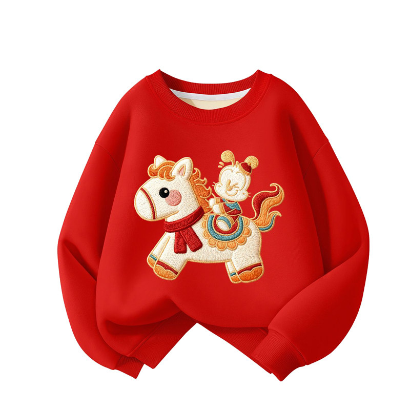 新年巴布豆儿童加绒卫衣男童拜年服冬季2026新款马年女童上衣童装