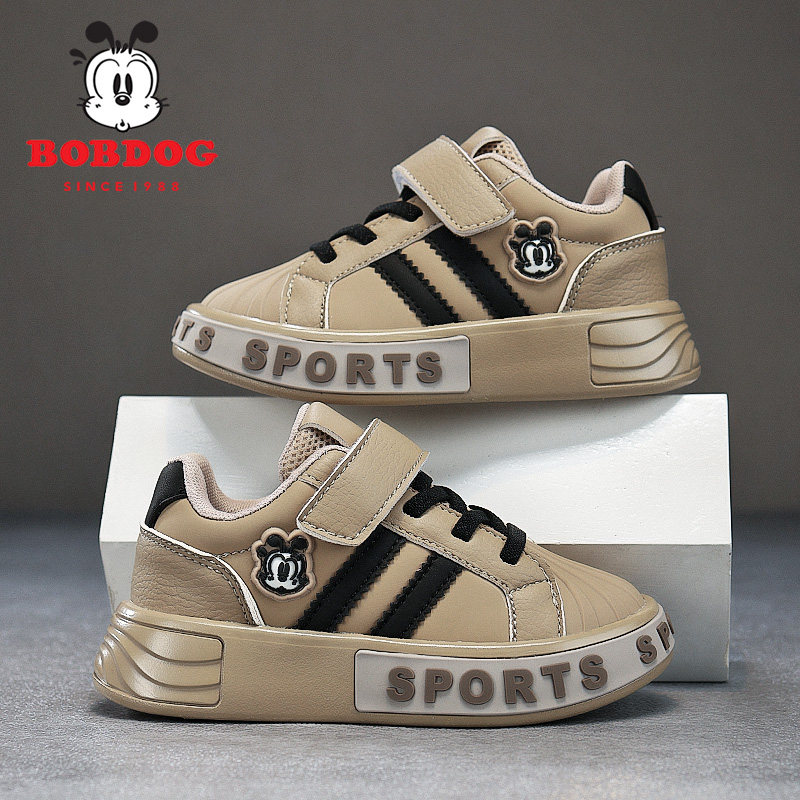 巴布豆男童板鞋防水皮面2025春秋新款宝宝鞋子休闲时尚女童运动鞋