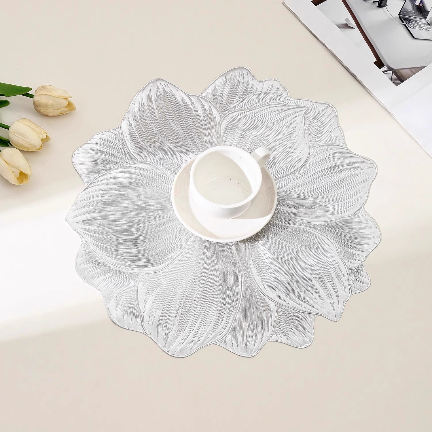 轻奢荷花防滑餐垫PVC隔热垫酒店家用西餐盘垫ins风桌垫碗垫装饰垫