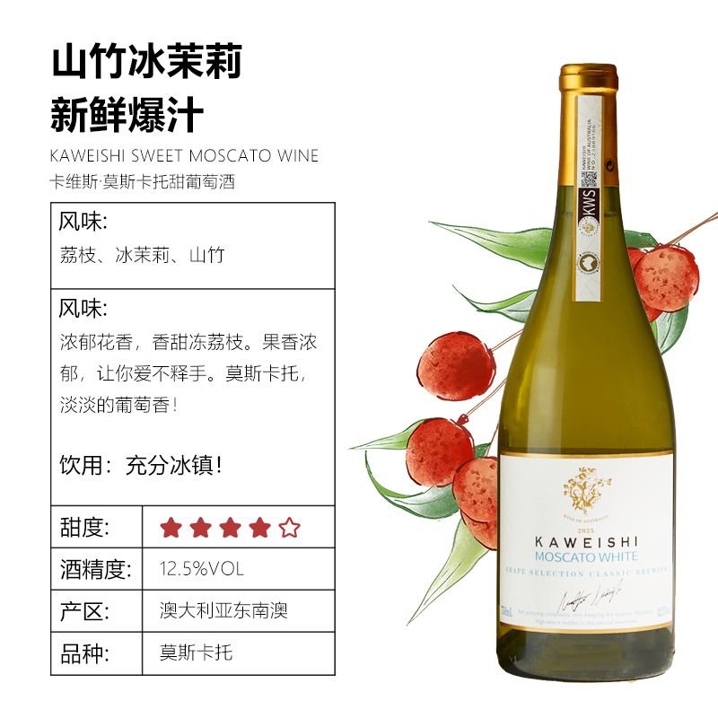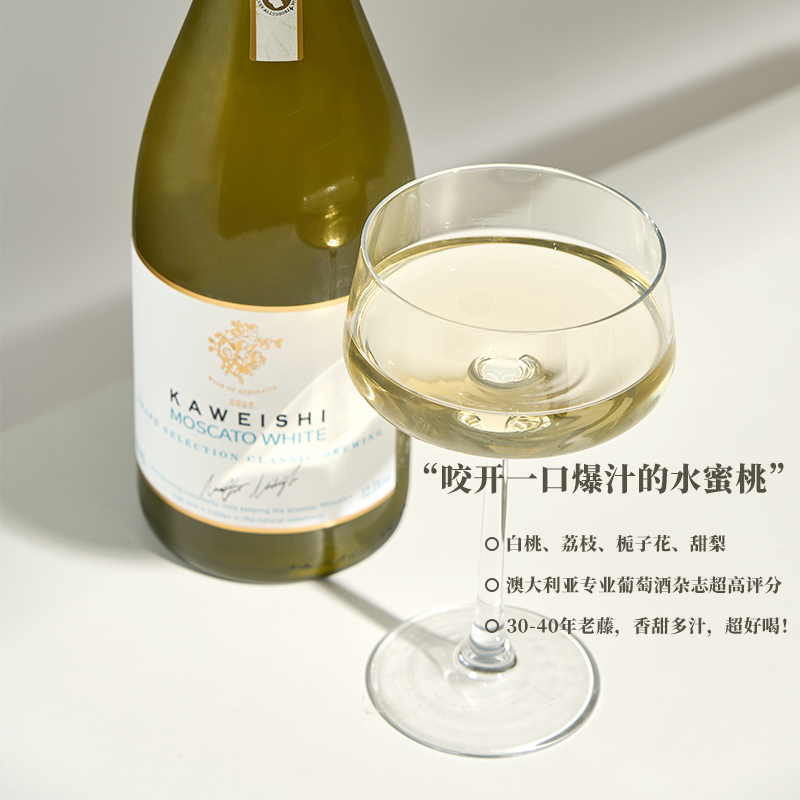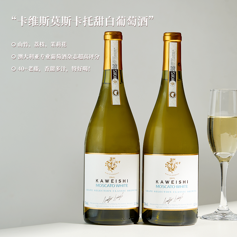 澳大利亚进口卡维斯莫斯卡托甜葡萄酒12.5度甜型小甜酒750ml瓶装